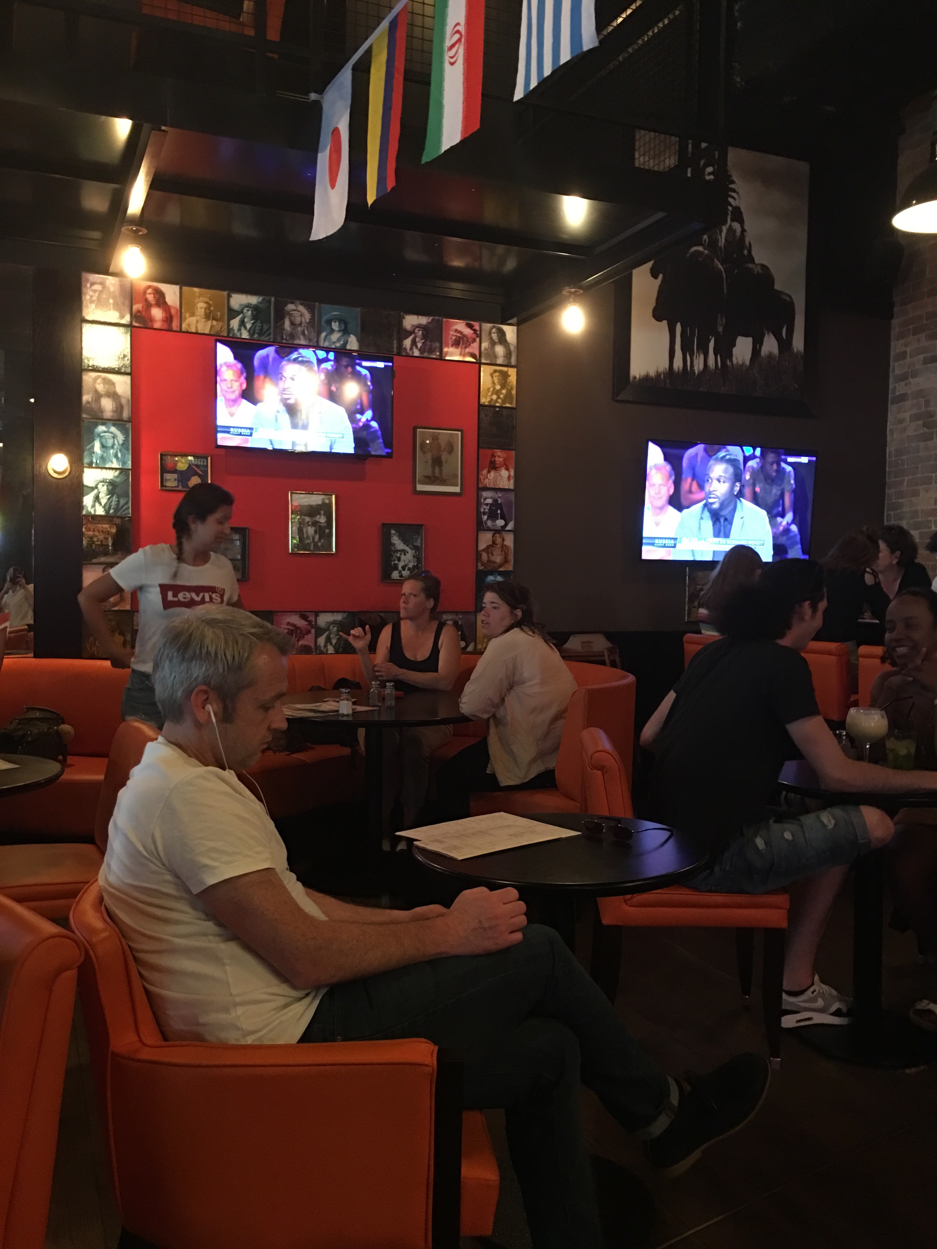 J'y étais avec des amis pour manger un bout devant le match mardi soir (le pub Au bureau à coté étant plein). La directrice et une serveuse étaient hautaines et nonchalantes. Pas un bonjour, pas un sourire... et la nourriture moyenne. Sans parler des erreurs dans les boissons. Puis nous avons été témoins de l'interpellation de deux clientes par la directrice du lieu. Mes amis et moi étions surpris de la façon violente dont elle les a interpellés. C'était violent et elle les provoquaient. ça nous a coupé l'appétit. Les clientes n'avaient rien fait de déplacé. Elles étaient très belles. Une partie du staff a mis de l'huile sur le feu. On aurait dit une cour d'école. Le siège doit être aux abois pour laisser ce genre d'énergumène la représenter. ça m'a touché car l'une des fille ressemblait beaucoup à ma petite soeur (une colombienne ?) et qu'elle était partie avant que je puisse aller lui parler par soutien. A FUIR !