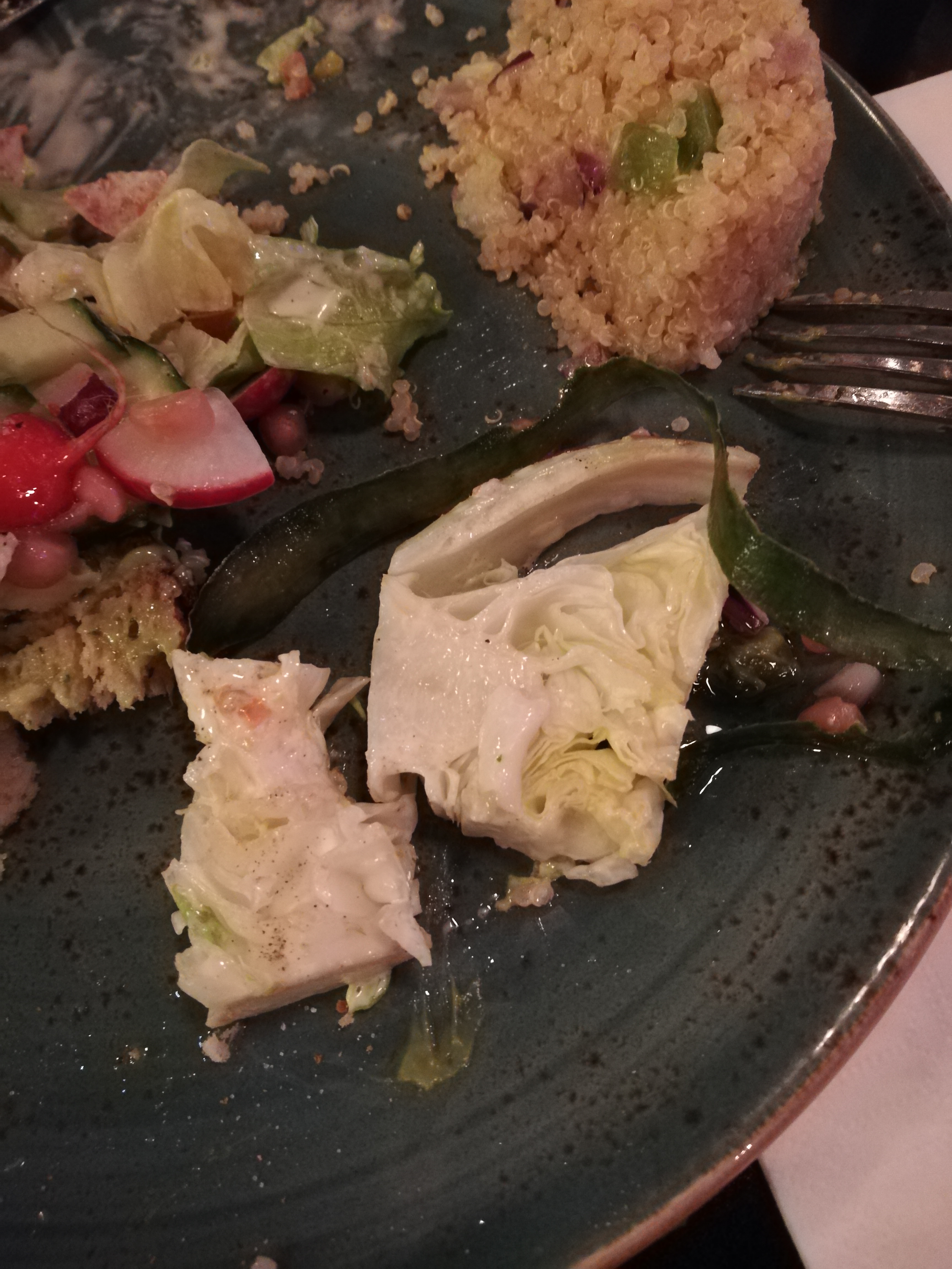 J'ai commandé un avocado toast, mauvaise choix. J'aimerais demander à la personne qui a préparé la salade si elle mange ce qu'elle a mis sur mon assiette (photo: le cœur de la salade). On a commandé aussi des nachos, bah je n'ai pas vu la différence entre un paquet de nachos acheté chez carrefour et ce qu'ils ont mis sur l'assiette avec une cuillère du guacamole (industriel). Bref c'est pas de la vrai cuisine ce qu'ils font. Horrible.