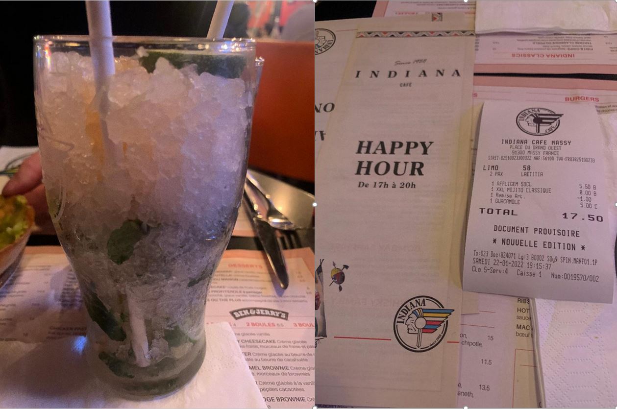 Très belle soirée entre copines à l’Indiana Café. Super endroit sur Massy , personnel très pro , souriant et accueillant Bon rapport qualité prix pour les plats et les cocktails ou même pour un café ! Musique cool en fond Encore merci et à très bientôt ! 😁
