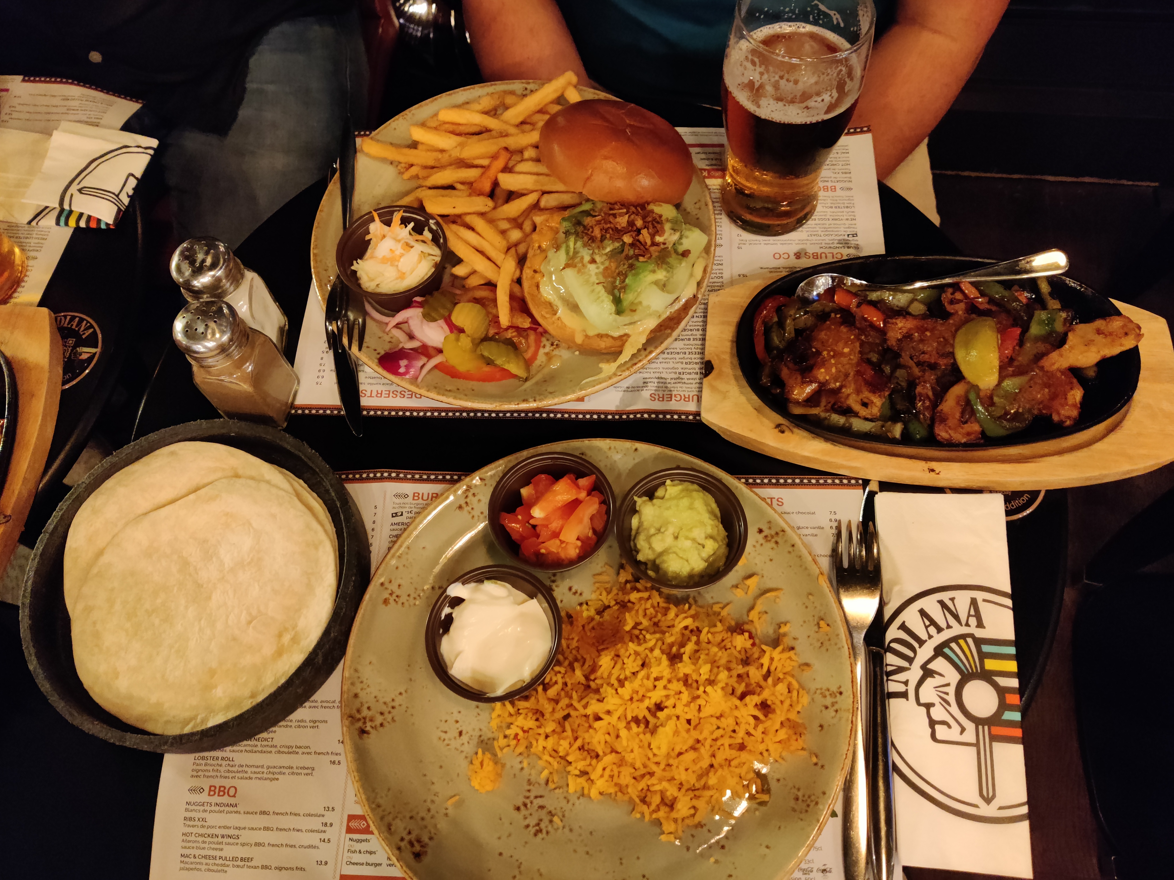 Je n’ai pas mangé à l’Indiana depuis mon adolescence. J’avoue que la nourriture n’est pas mauvaise mais pas excellente non plus. Les boissons étaient du même acabit. Je pense que c’est un meilleur endroit pour prendre un verre avec des amis et manger des starters pendant l’happy hour que pour un repas au vue du prix. J’y suis allée avec mon petit frère, pour lui cela était bon et une bonne expérience. Les portions sont généreuses. Par contre, le service était de bon qualité et respectueux.