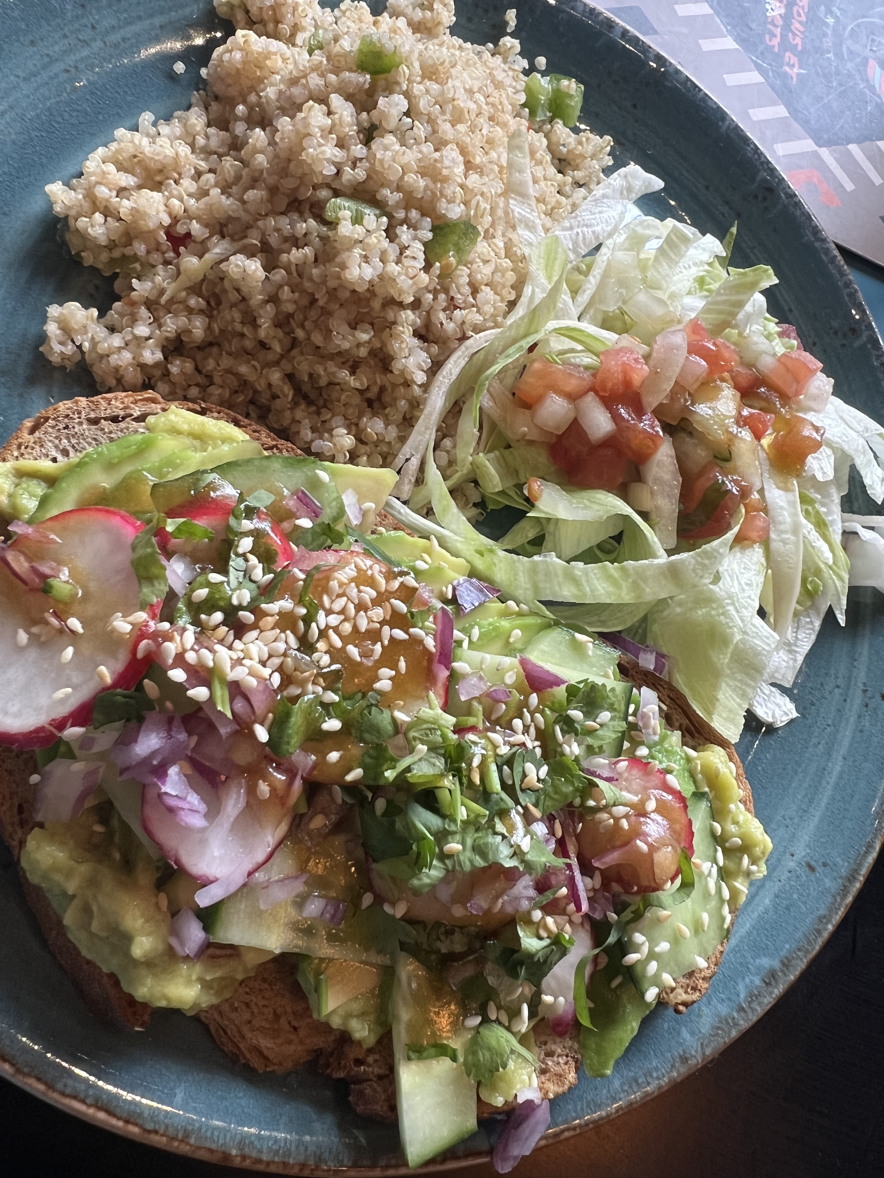 Un midi avec mes collègues, j’ai pris un avocado toast. C’était pas mal, mais j’ai trouvé un gros bout de plastique dans mon plat. Dans l’ensemble, les plats n’étaient pas au top ! Notamment le poké bowl, qui semblait décongelé (d’après mon collègue)