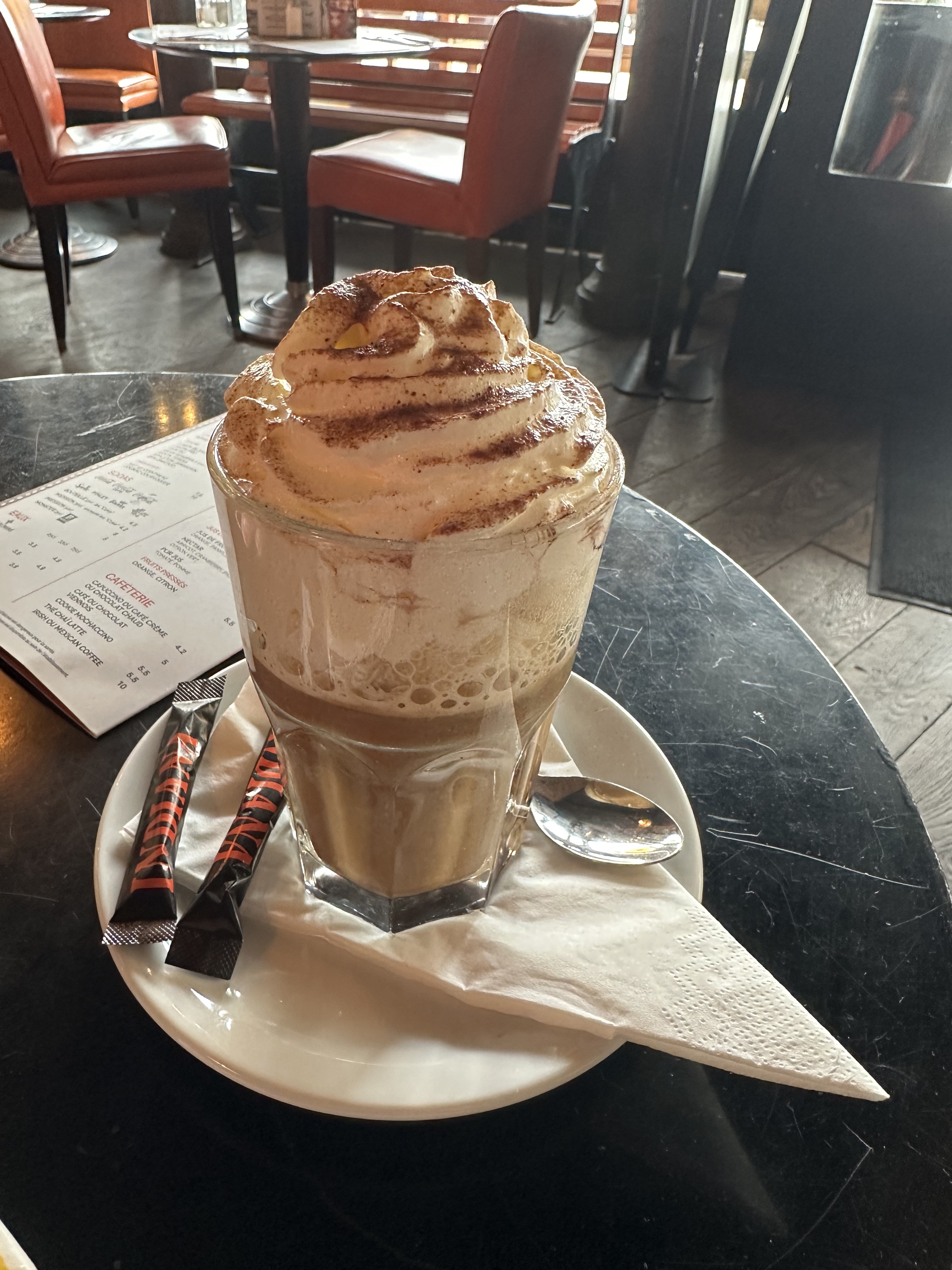 J'étais juste venue prendre un verre + un dessert avec un ami. On avais pris les profiteroles à partager eh bah j'ai jamais mangé un dessert si mauvais qui sois aussi cher.