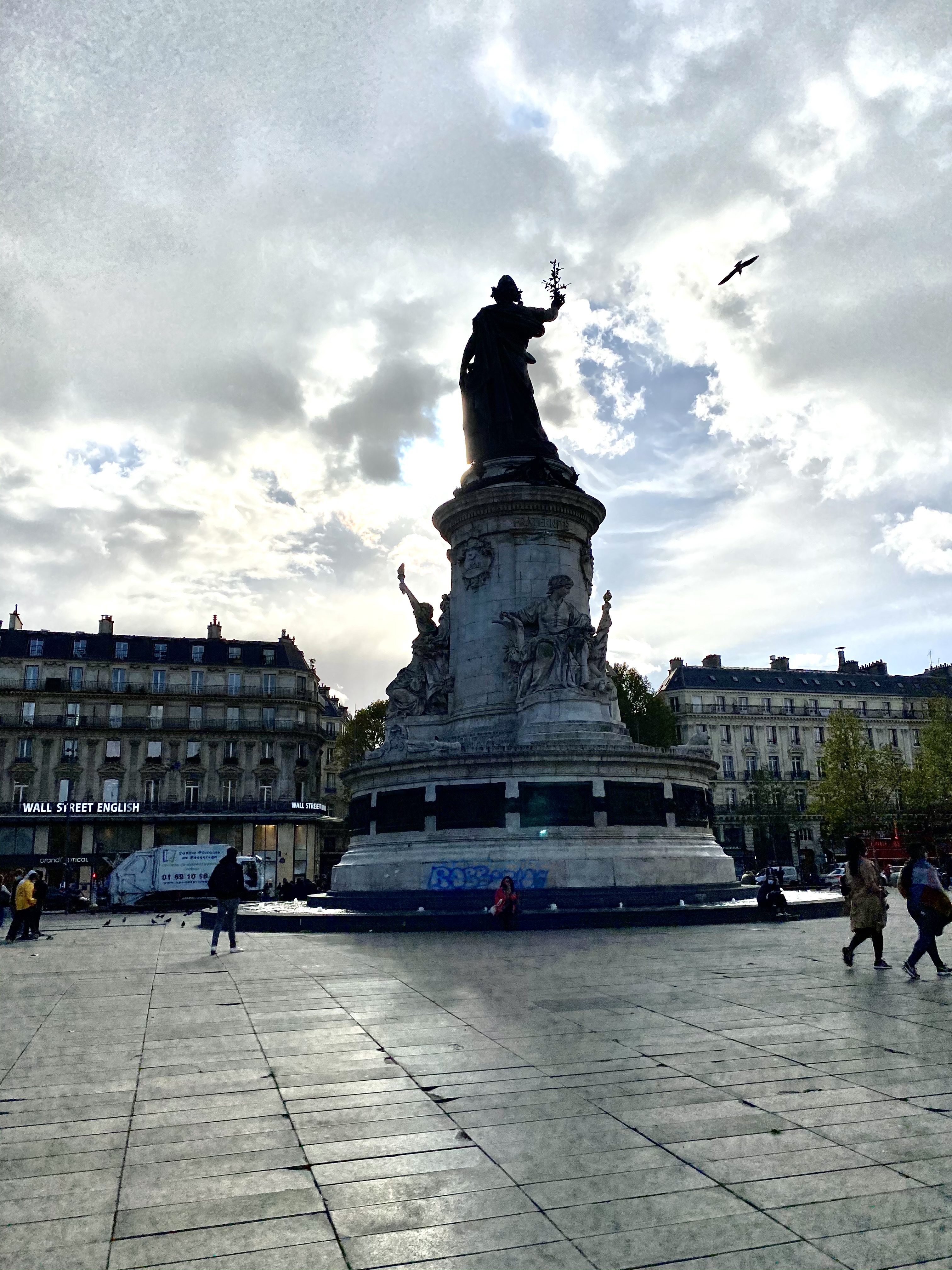 Lieu plutôt agréable place de la république à Paris où l'on peut manger ou prendre un verre à toute heure de la journée. Rapport qualité/Prix acceptable.