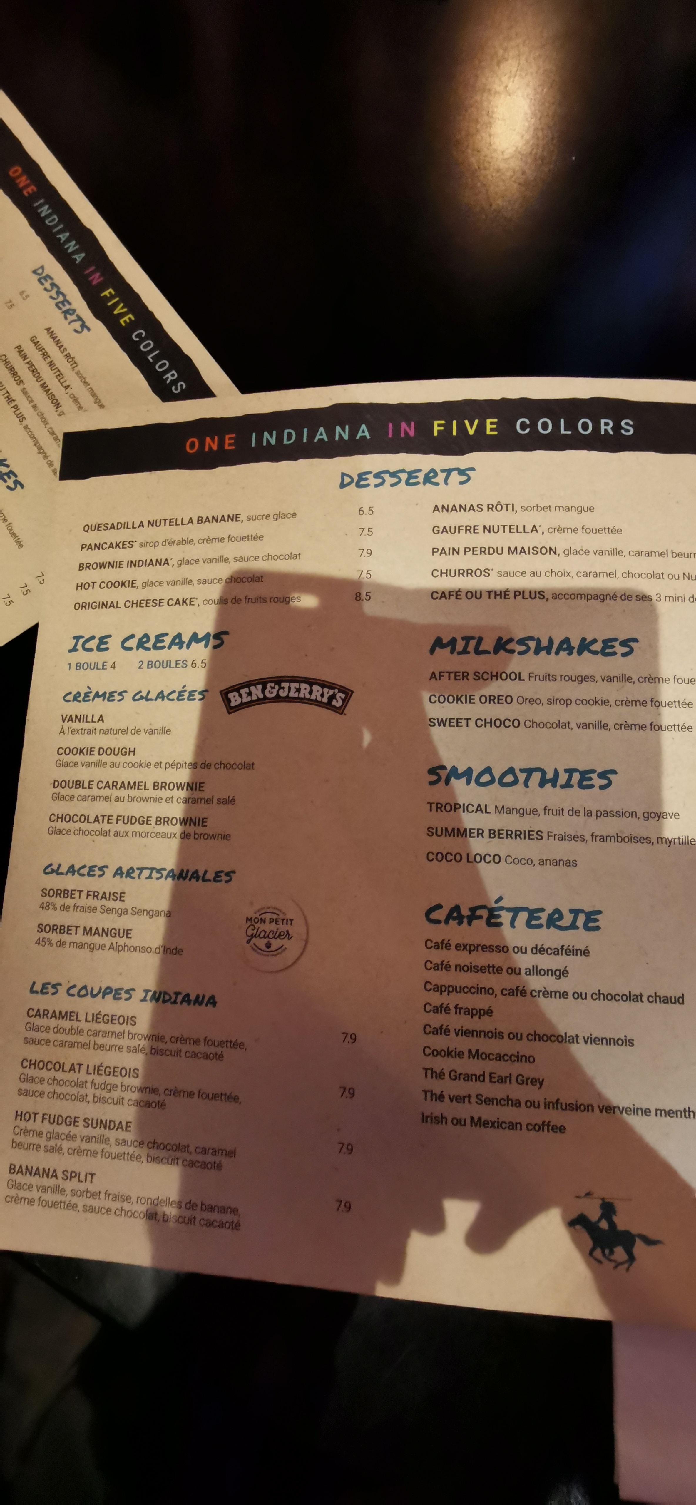 Nous sommes samedi soir en famille, a la recherche d’un restaurant. Bon accueil dès l’arrivée. Ma fille a choisi notre table par la suite. Jolie décoration à l’américaine, par ailleurs quelques touristes anglophones étaient présents dans un cadre musical relaxant. Les plats étaient copieux et bons. Les cocktails sont également bons. Quant au service il était attentif comme il faut, avec justesse. Au final une bonne soirée chez Indiana café ! nous nous sommes senti à l’aise, que demander de plus . Bravo à l’équipe ! Nous reviendrons.