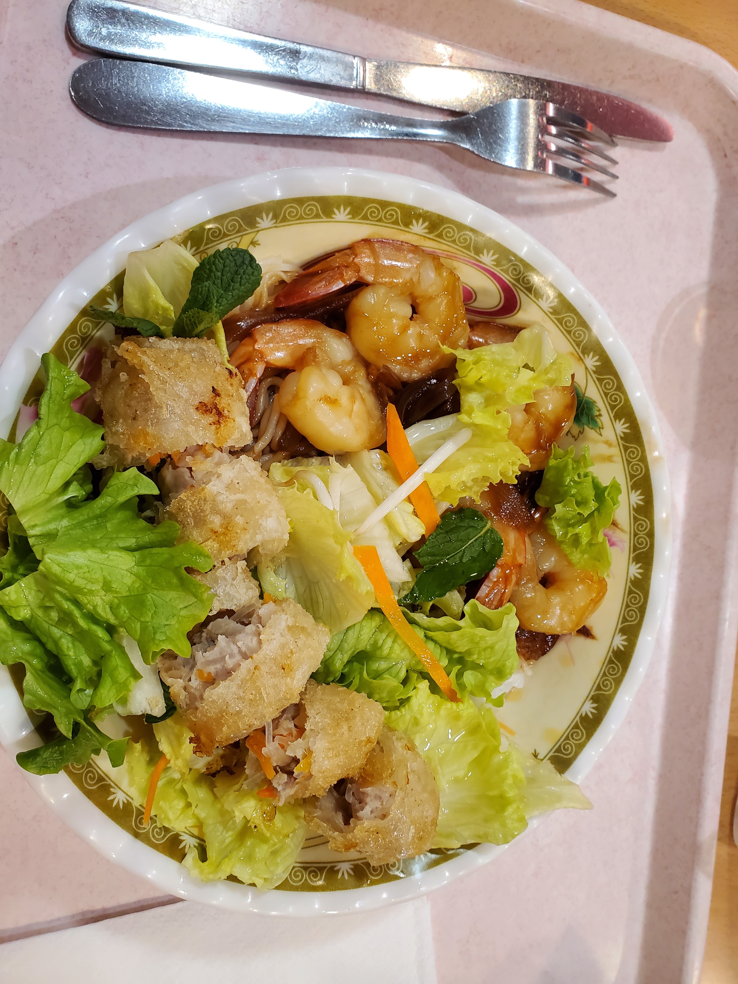 Accueil chaleureux. Et cuisine excellente. Sur la photo, un bo bun de crevettes. Un régal.