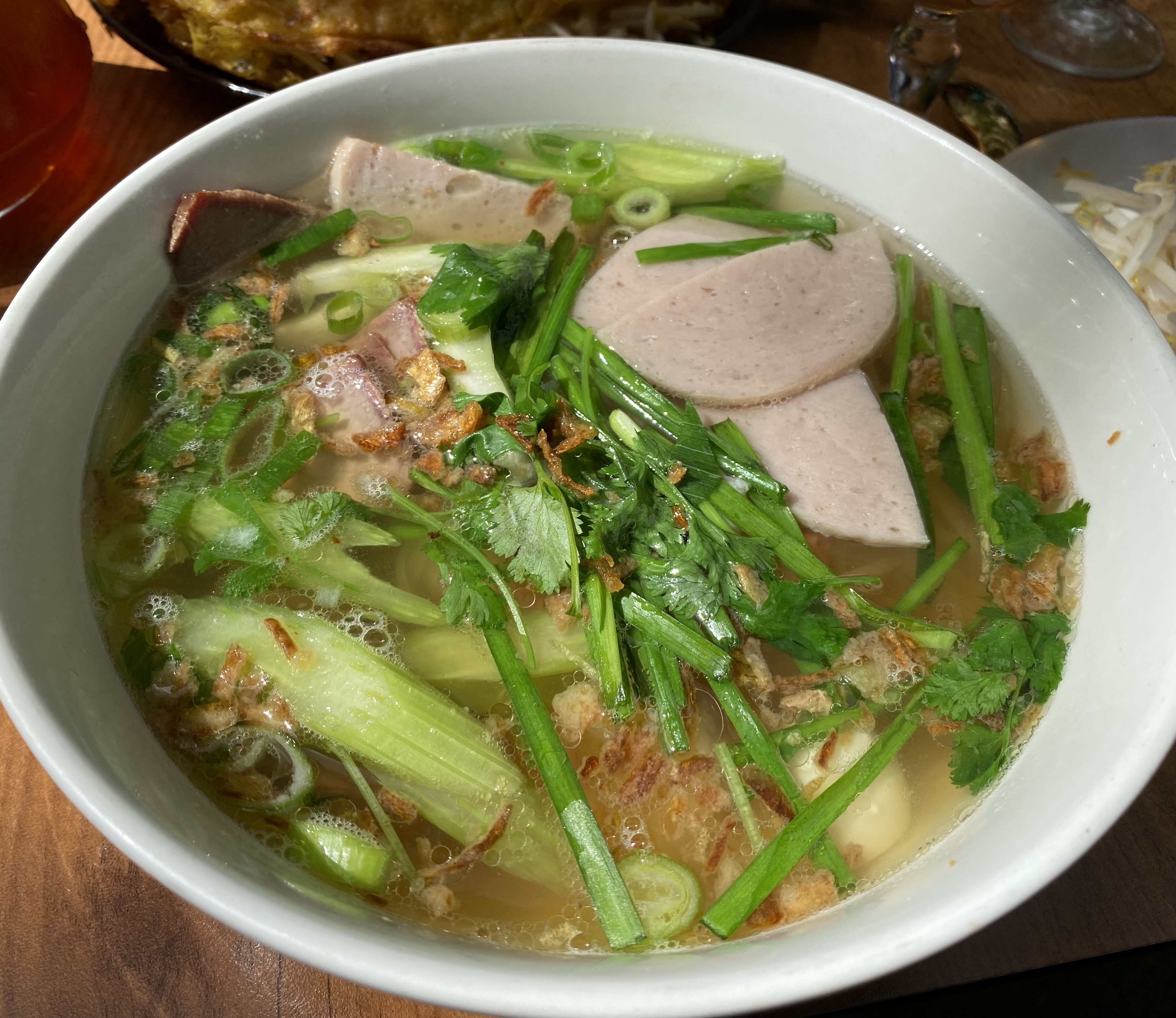 J'ai pris un « assortiment de la maison » et un Hu Tieu Kho. La portion était assez grosse pour mon bol. Je n'ai pas pu le terminer donc c'était un très bon rapport qualité/prix. Toutes les garnitures de mon Hu Tieu étaient correctes (mais le charsiu manque un peu de goût). La sauce pour mélanger les nouilles sèches ne répond pas à mes attentes (le goût ne ressemblait à rien de ce que j'ai essayé à Saigon), j'ai donc dû mettre plus de siracha et de sauce pour la mélanger. L'entrée était meilleure et d'un bon rapport qualité-prix aussi. Le rouleau de bœuf est mon préféré. Le personnel était correct mais le grand groupe au milieu du restaurant est tellement bruyant que je n'aime pas l'ambiance ce soir-là.