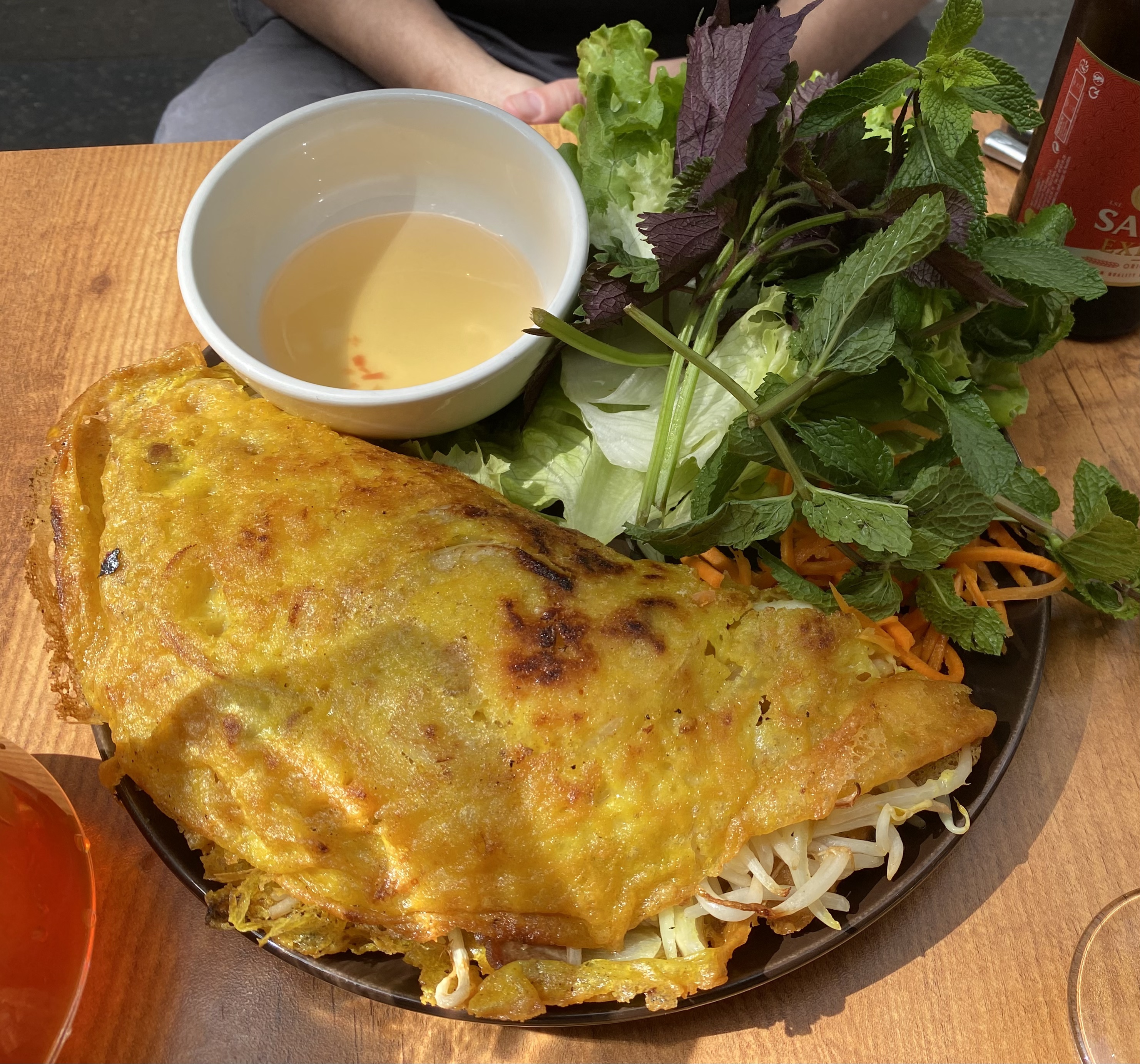 Excellent Banh Xeo! Croustillant à souhait, bien copieux et accompagné de bonnes herbes! Bravo et et bonne sélections d’entrées! Une superbe découverte
