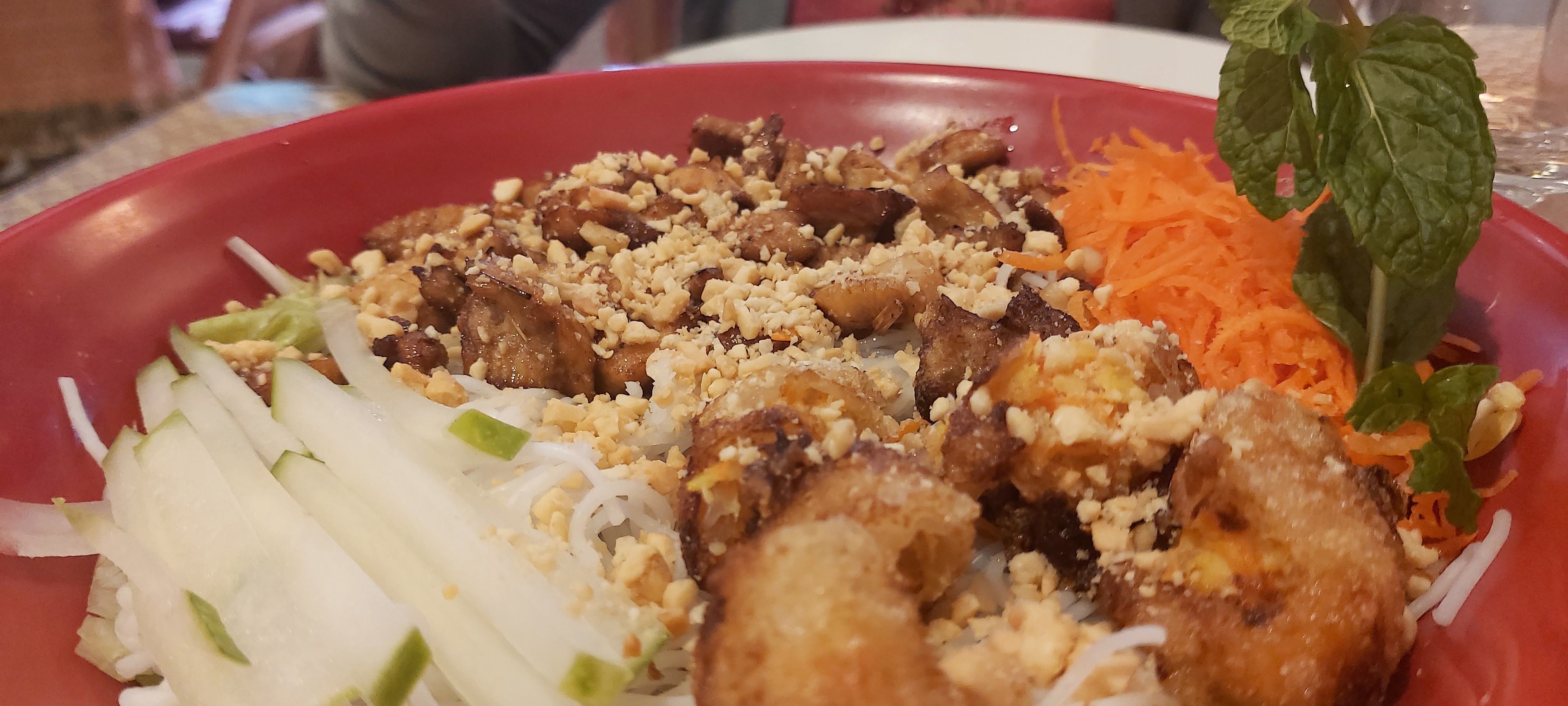 Passer une réservation à la dernière minute pour 2 personnes. Bon acceuil. Service rapide et aimable. J'aurais souhaité un petit peu plus de légumes dans les rouleaux de printemps mais ils étaient très bons. Le bobun bœuf excellent et le bol bien rempli ! Mon compagnon et moi sommes sortie de ce restaurant satisfaits et le ventre plein.