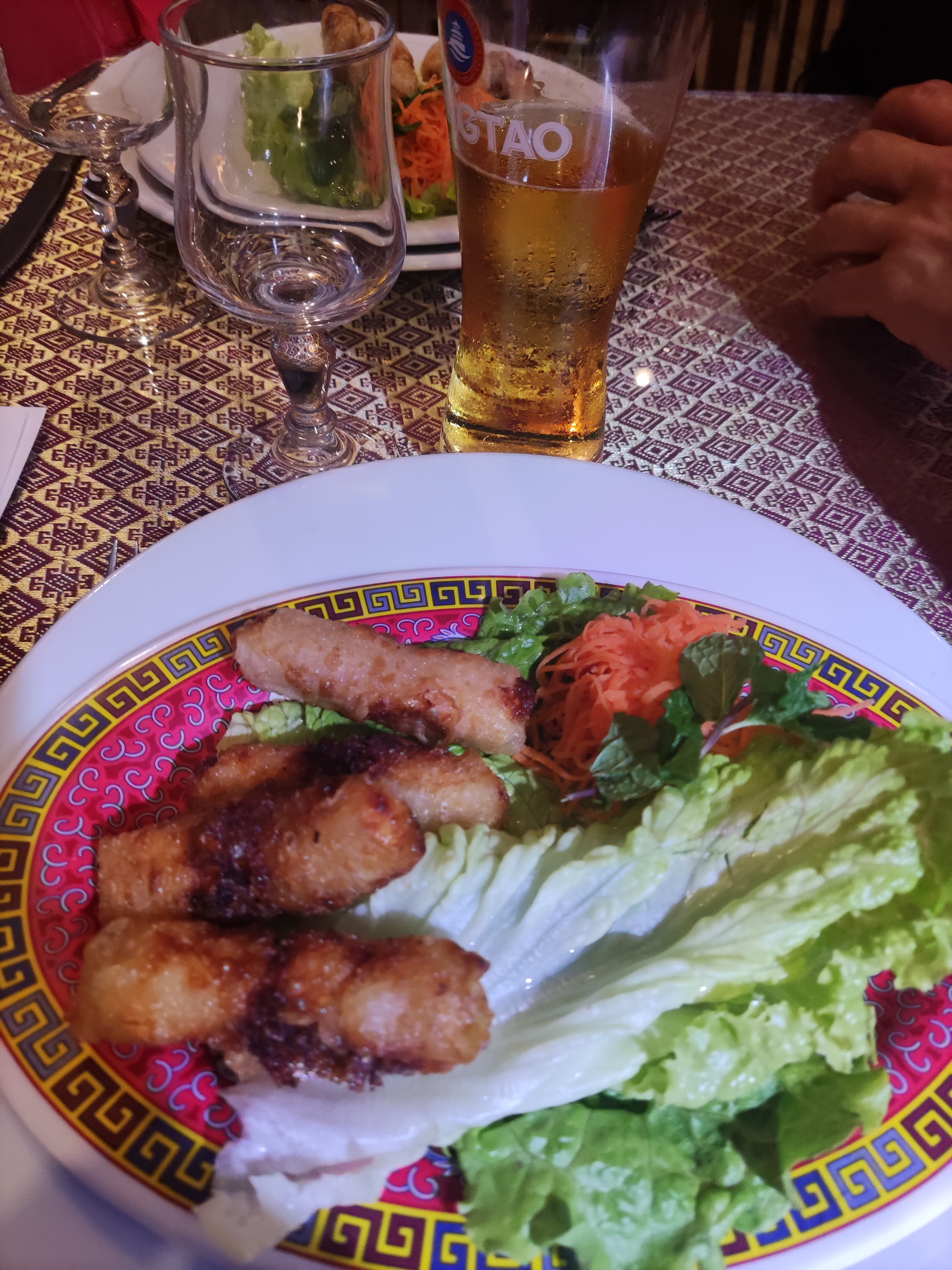 Vraiment déçu de se restaurant, on nous a servi quatre petits nems brûlés sur un tas de salades avec des carrotte tellement râpée fin que sa suée. Un porc aigre doux sans goût, avec des légumes coupé au razoir, et ses même carrotte encore présent dans se plat, les ananas été tellement fine qu’elles étaient transparente. Le poulet gros piment, tres sec, le poulet l’imite un goût de brûlé, sec, dur et qui plus est pas de sauce. Je n’y retournerai pas, en plus d’avoir signalé que les nems étaient brûlés, aucun geste n’a été fait Au revoir