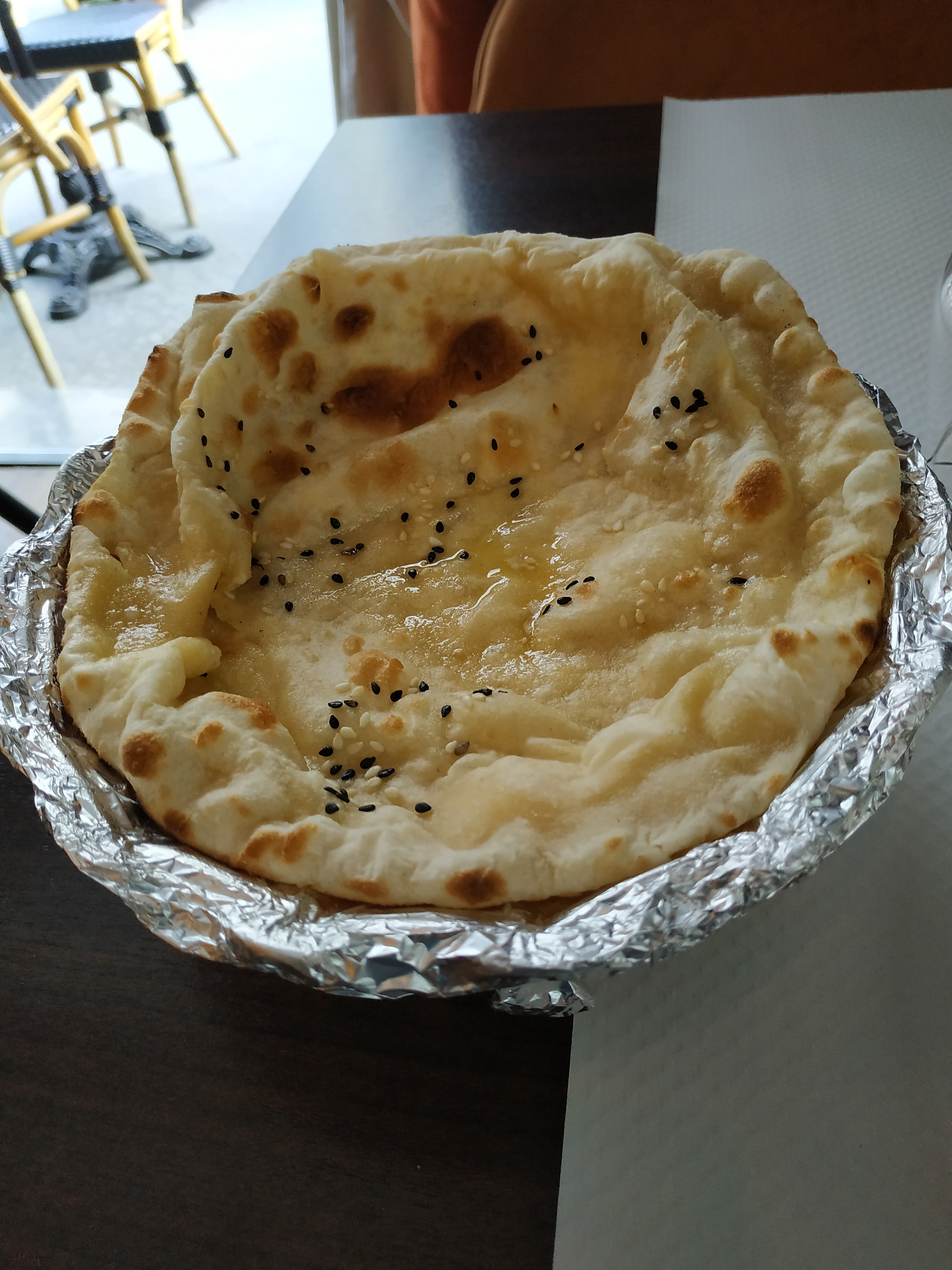 Un vrai régal, le cheese naan était exceptionnel : le meilleur que j'ai pu manger jusqu'à maintenant, il accompagnait parfaitement ma sauce de rangoli aux légumes. Le lieu, le décor, L'accueil : top!
