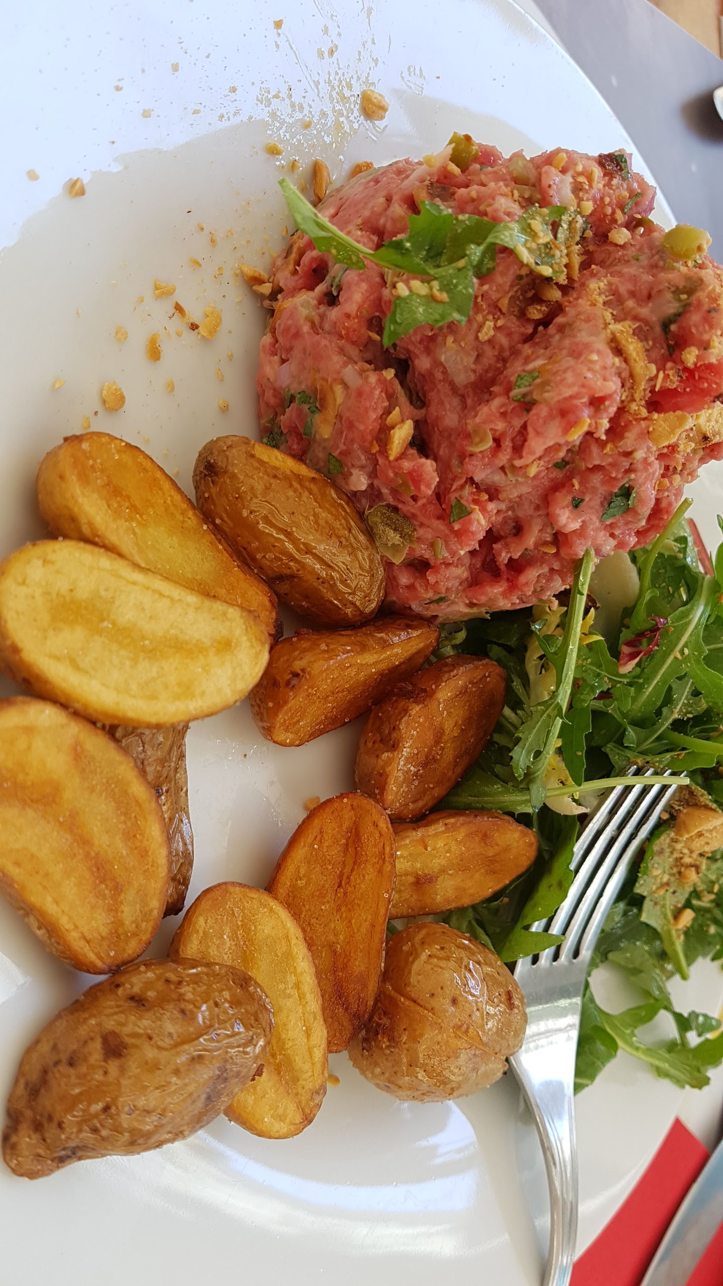 Super repas. Plat du jour à 14€. J'ai mangé un super tartare de bœuf aux noisettes, un régal. Le seul reproche que j'ai : le demi-pichet de rosé. Le moins cher est facturé 16€, un tarif exorbitant pour un rosé carrément plus que moyen... Très dommage... Malgré ça je recommande largement ce restaurant pour la qualitée des plats.