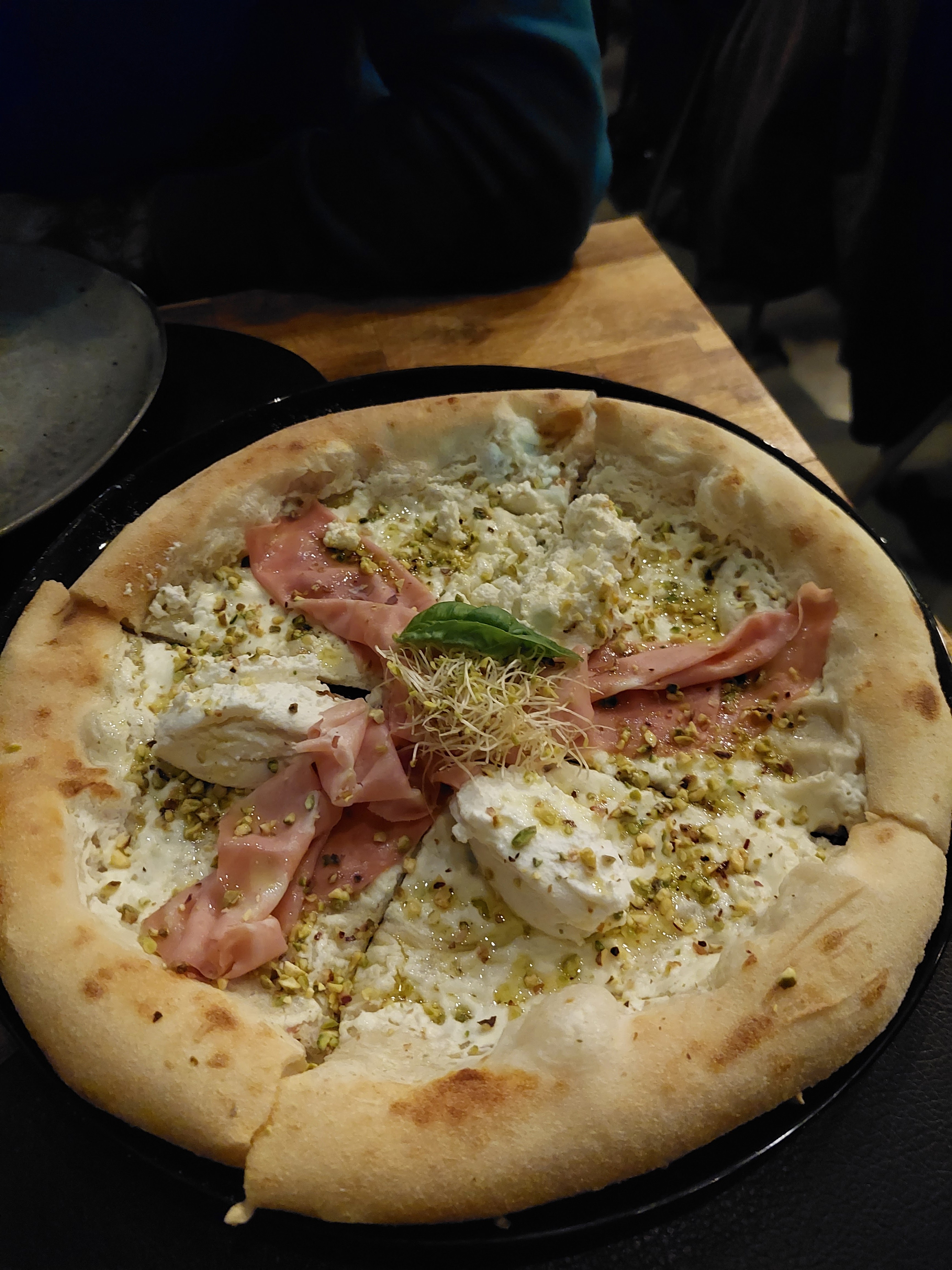 Pizza bonne, aménagement de l'espace très réussit mais musique un peu forte pour discuter ... déçue