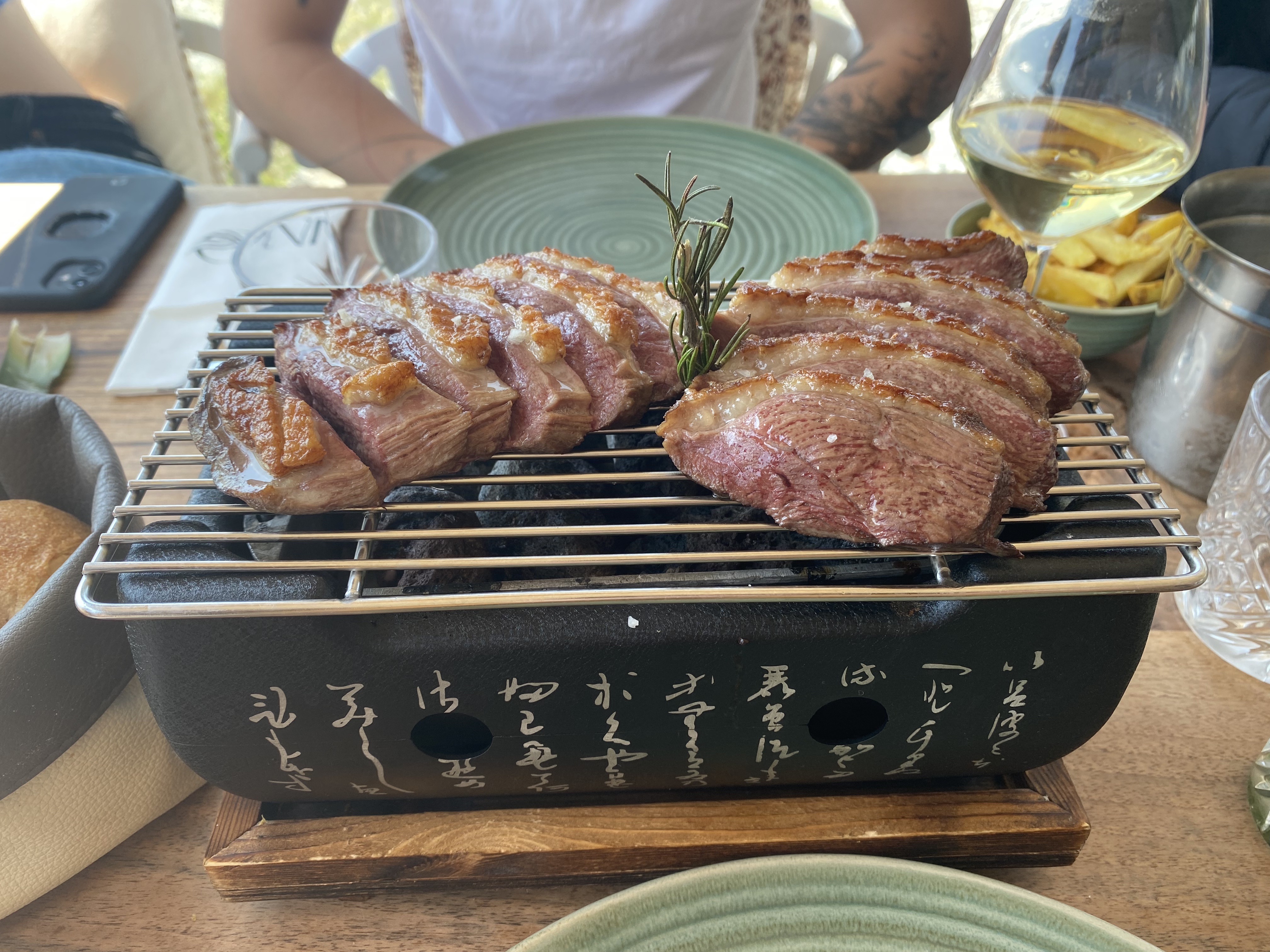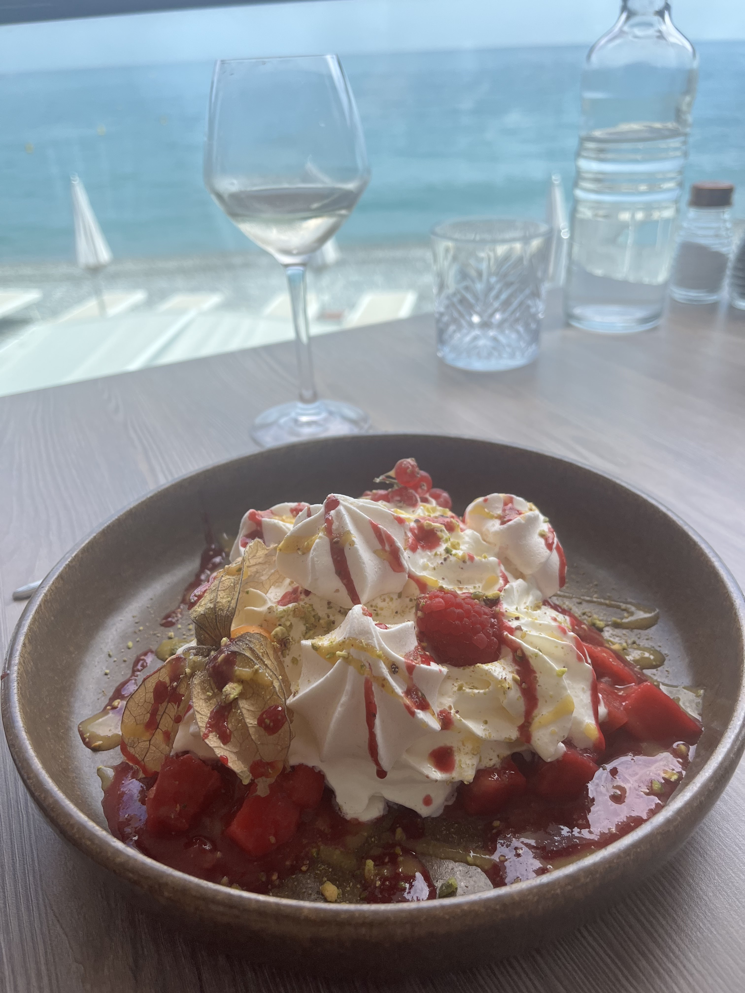 Adresse parfaite et donc vivement recommandée. Une qualité de plat inattendue pour un restaurant de plage privée. Poulpe cuit à basse température à la gallega délicieux. Une crème de yaourt avec du muesli, des fruits rouges et du coulis à la violette. Le tout copieux. Un service souriant, efficace et une vue mer qui vous fait voyager... Bravo.