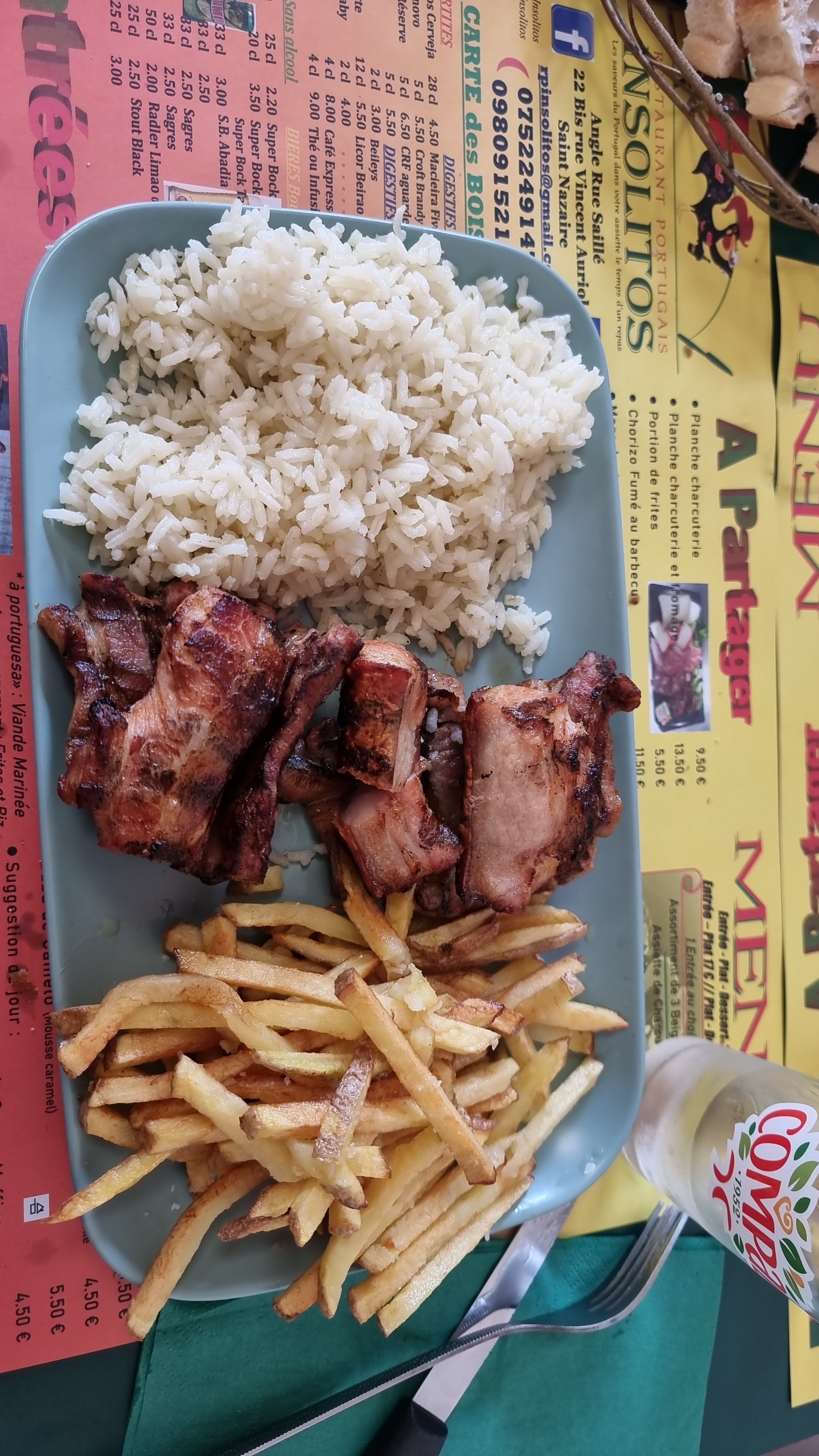 Je déconseille, très décevant. Cher pour ce que l’on mange, et de plus ce n’est pas très bon. Plat mix 33 euros. Une cuisse de poulet couper en deux et petit steak, une côte de porc très fine, deux os (parce que vu que c’était cramé je ne pourrais pas dire ce que c’était comme viande..) avec des frites surgelé et du riz au curry (Déjà tout fait).. et 4,50 euros les pasteis de nata industrielle, no comment. On arrive, on pause nos mains sur la table elle tombe .. on demande une Sumol orange, elle nous sert un jus tropical. Bref. Il y a de très bon restaurant portugais mais pas celui ci. Ce n’est pas un restaurant portugais digne de ce nom.