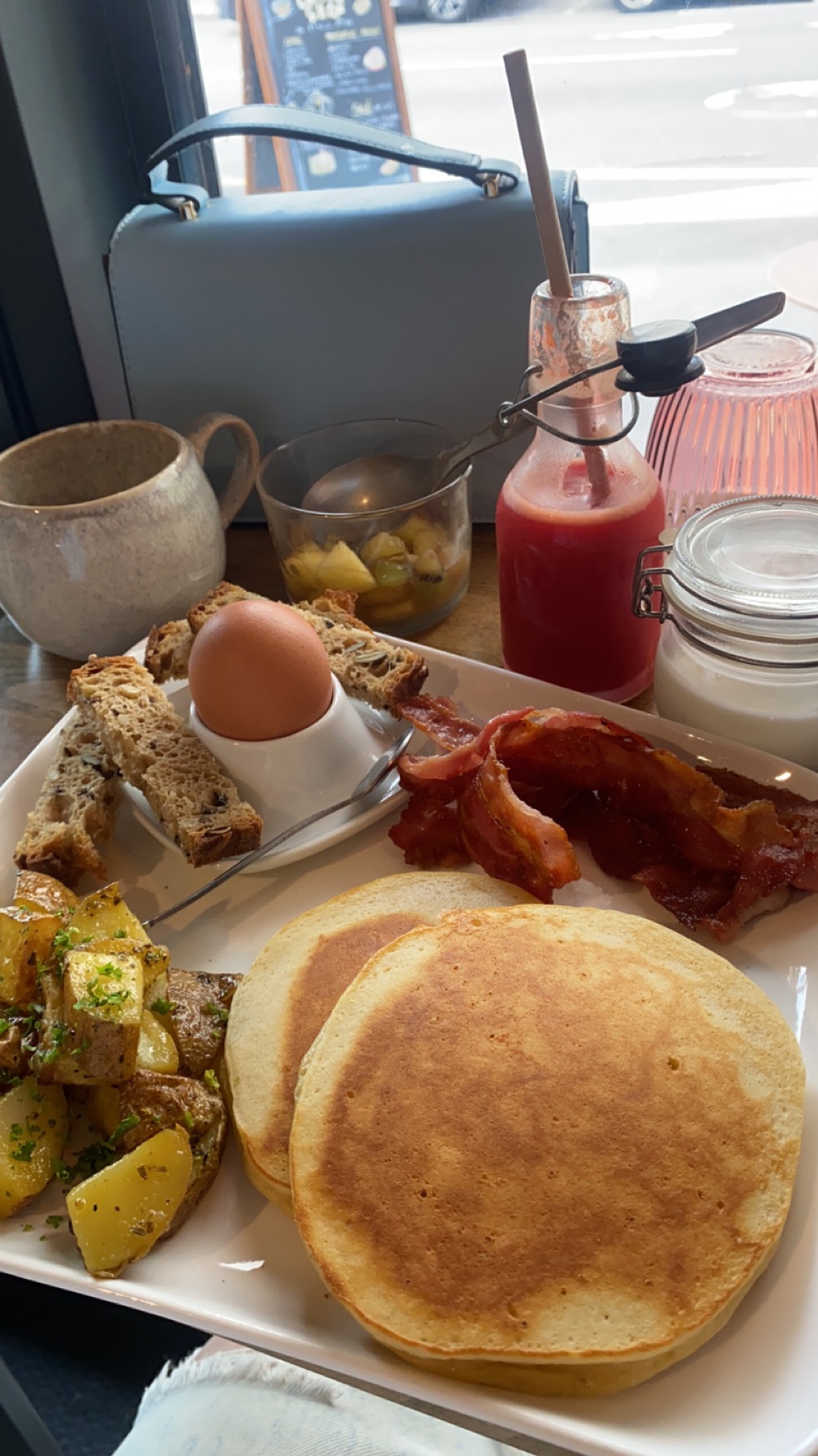 Nous avons choisi de découvrir ce lieu dimanche pour son originalité et nous avons bien fait car nous avons passé un agréable moment, l'accueil est sympathique et le staff souriant et de bonne humeur Les jus de fruits maison, les oeufs brouillé au bacon, le fromage blanc que j'ai choisi d'agrémenter avec une délicieuse confiture ananas, coco, vanille, les pommes de terres rôties vraiment, tout est vraiment très bon Nous reviendrons sans hésiter