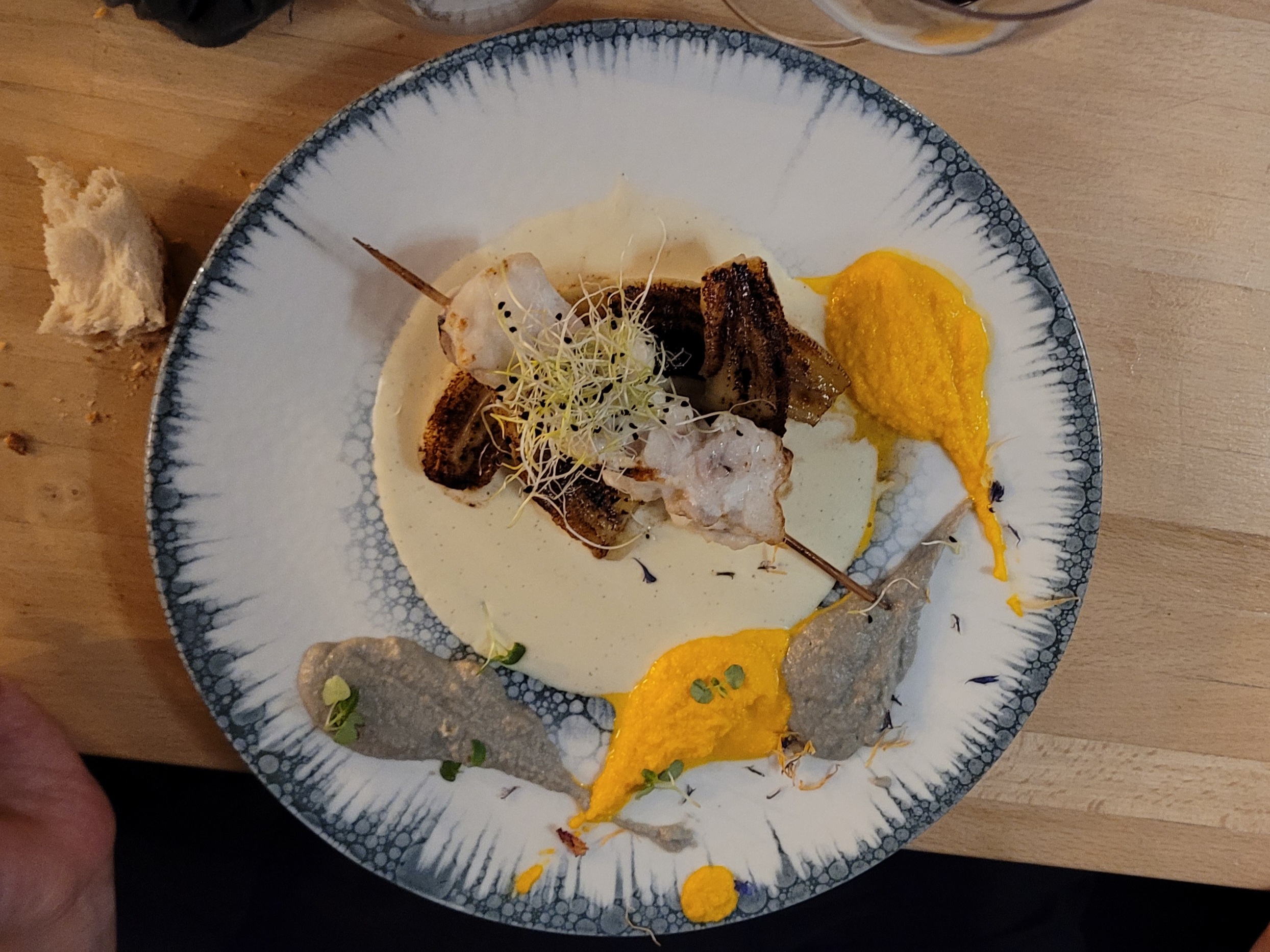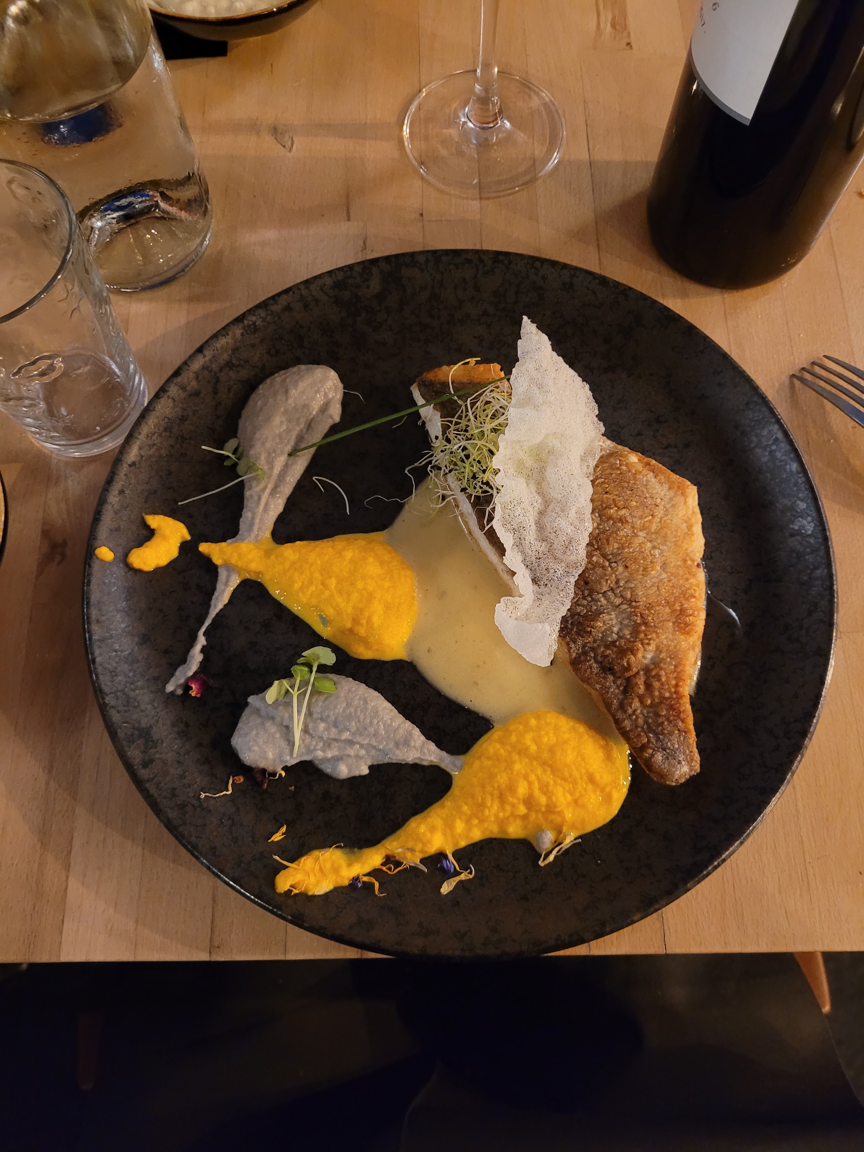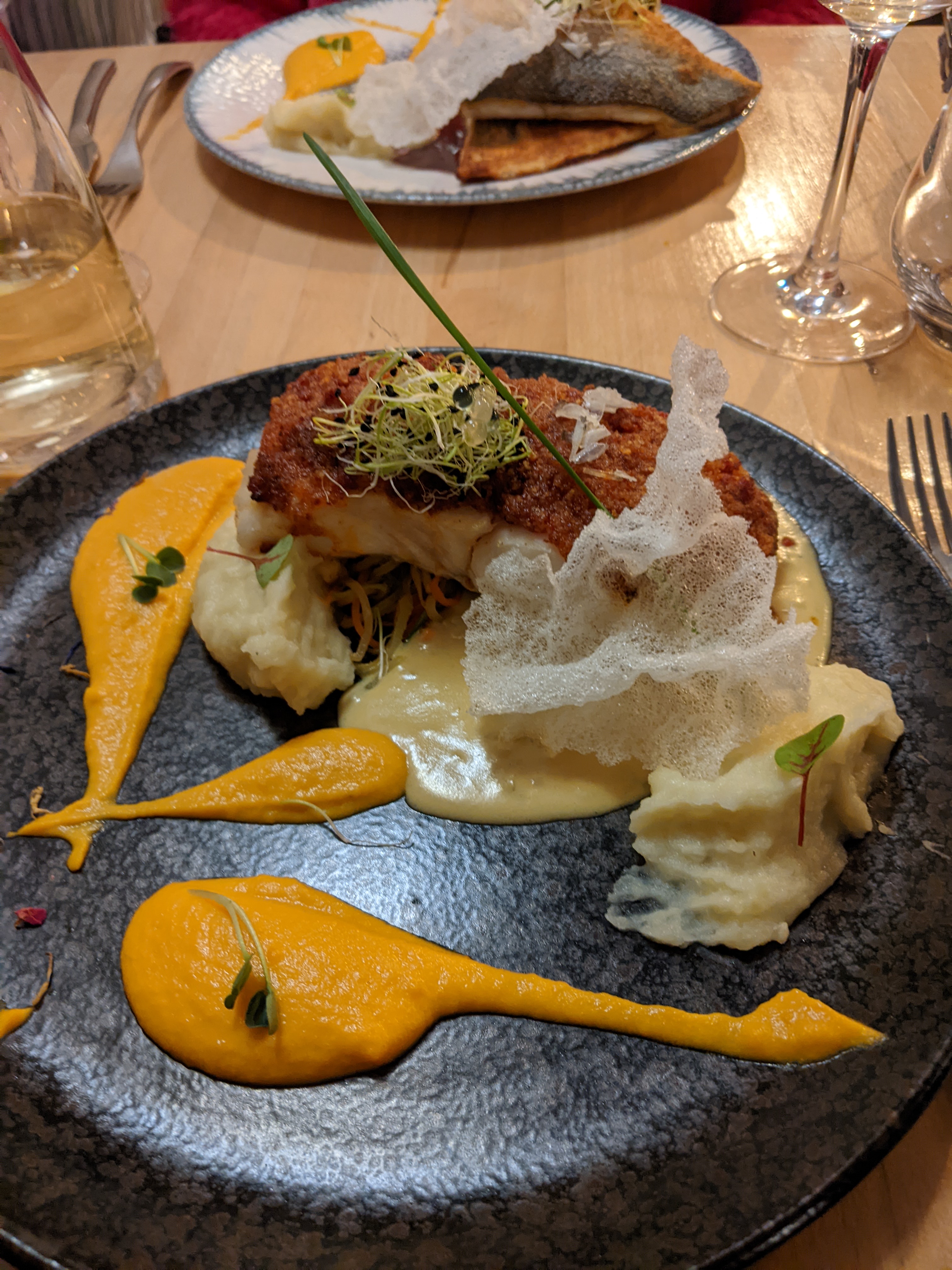 Ma compagne a été ravie de son lieu jaune mais moi et ma pièce de bœuf un peu déçu... La viande était malheureusement pas tendre.. Mais le service était top et la cuisine semble délicate. Peut être juste un loupé pour la viande...
