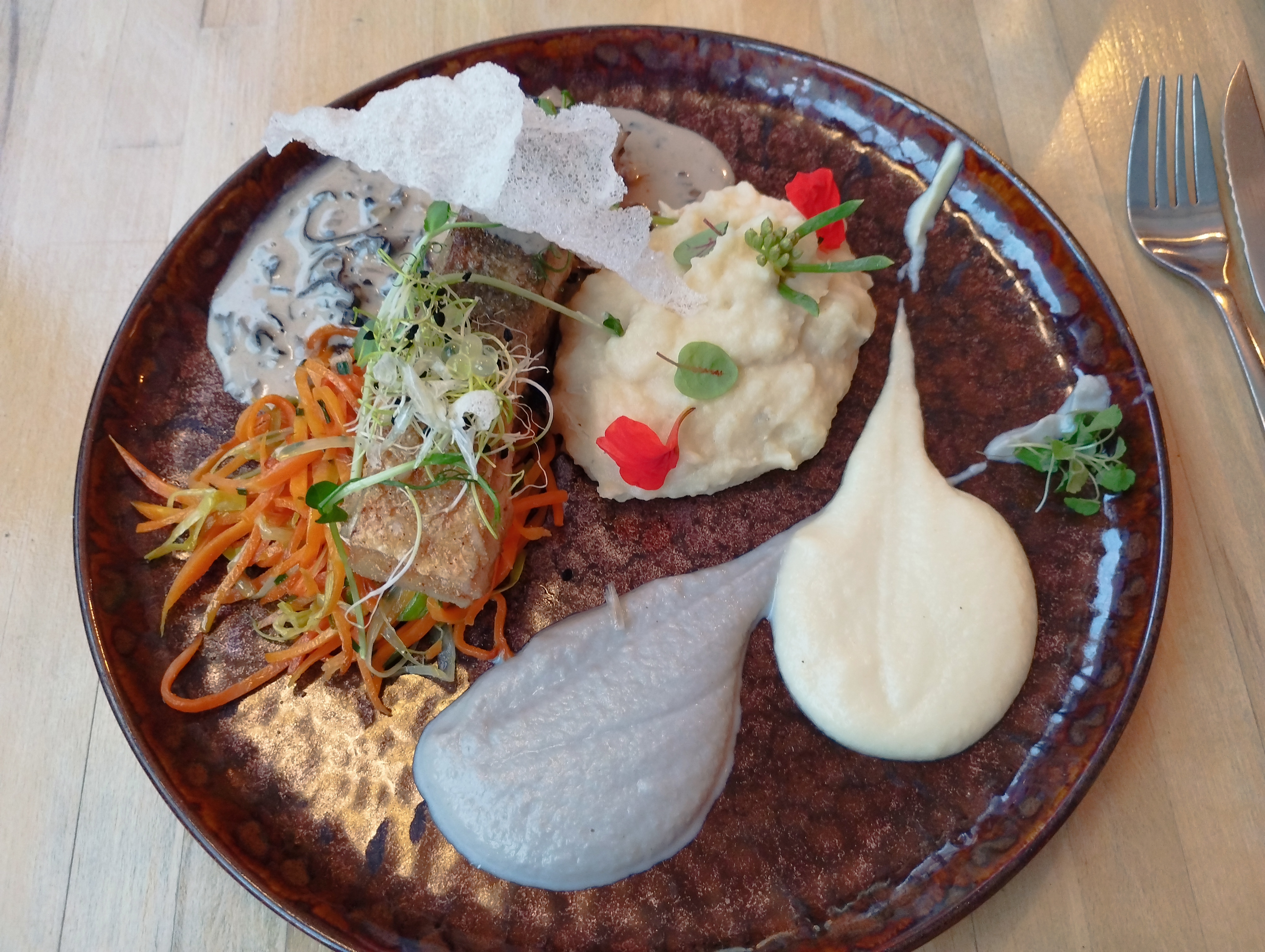 Une super adresse ! Sur deux commandes entrée-plat-dessert, tout était à la fois délicieux et magnifique. La serveuse/gérante du restaurant est très sympatique, et a répondu avec enthousiasme à toutes nos questions sur les plats et sur les coins locaux à visiter !