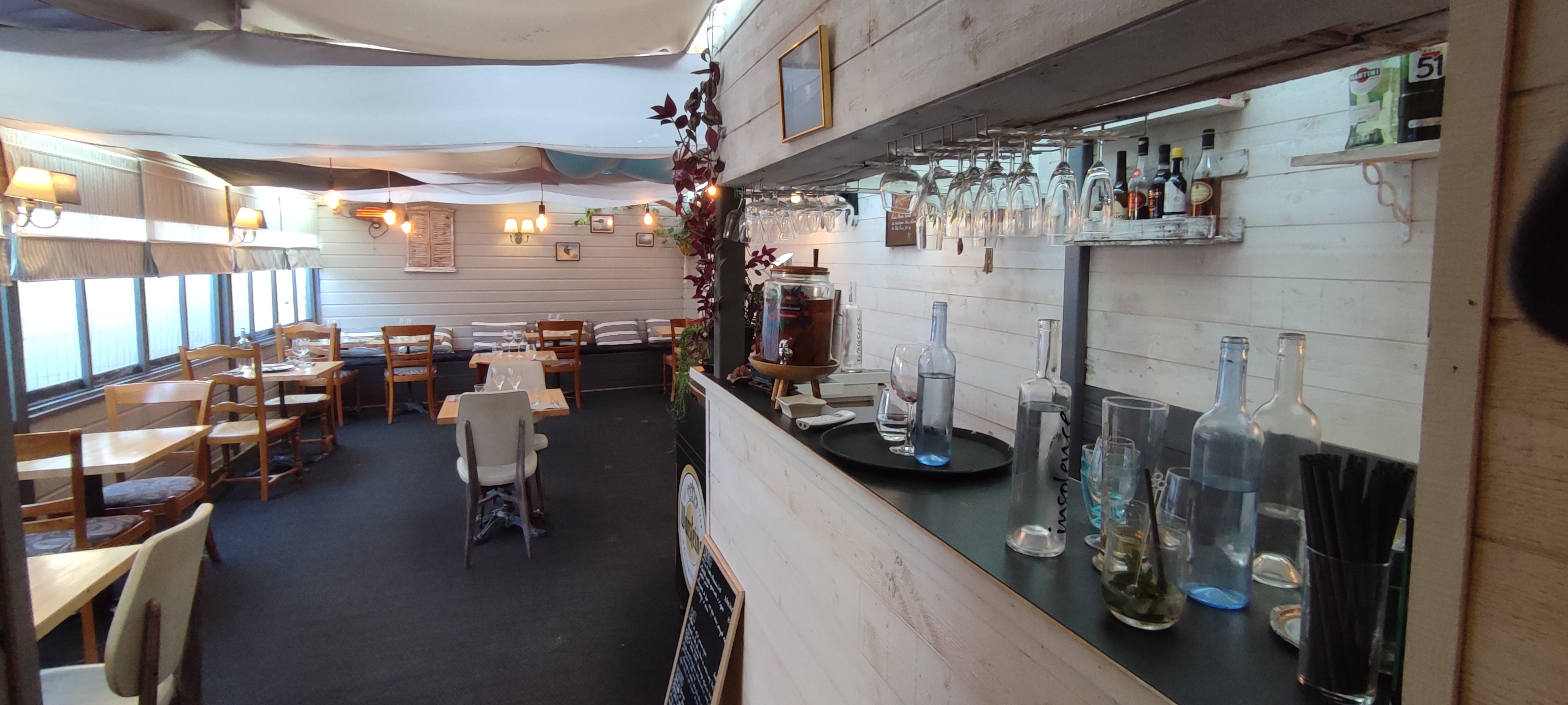 Accueil très chaleureux aussi bien à la réservation qu au moment de notre dîner. Ambiance chaleureuse et décors très agréable. De bons cocktails maison. Assiette enfant poisson et frites maison. De bons produits frais bien servis. Avons moins aimé les desserts en revanche.