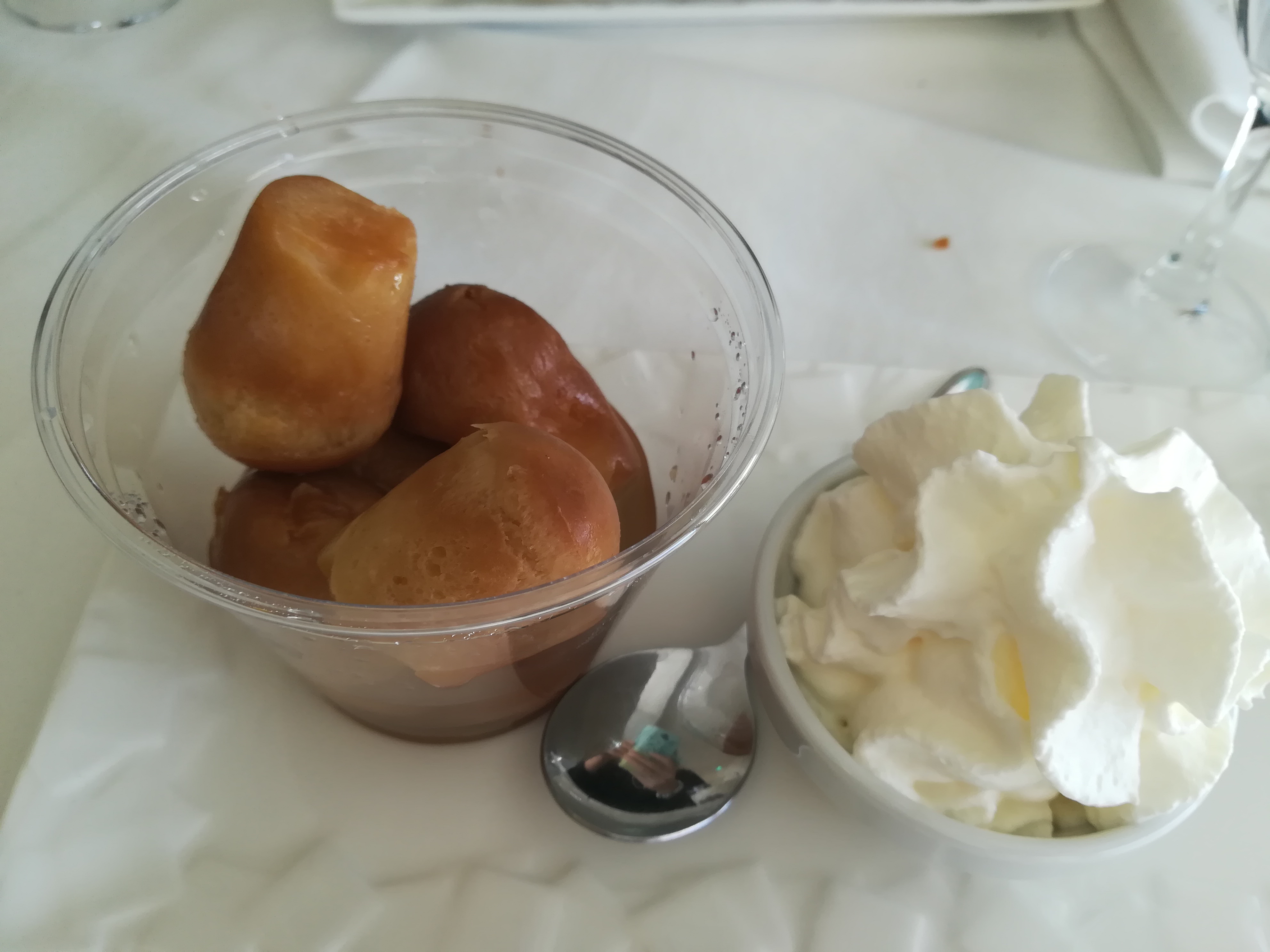 Très bon, Dans un restaurant j'apprécie les nappe en tissus et les serviettes çà donne un jolie cachée de grande table, est Le modernisme arrive avec les pots a dessert en plastique ! Il y a vraiment un contraste ! Cela ne ma pas déranger pour autant, du moment que l'intérieur du plat est bon .