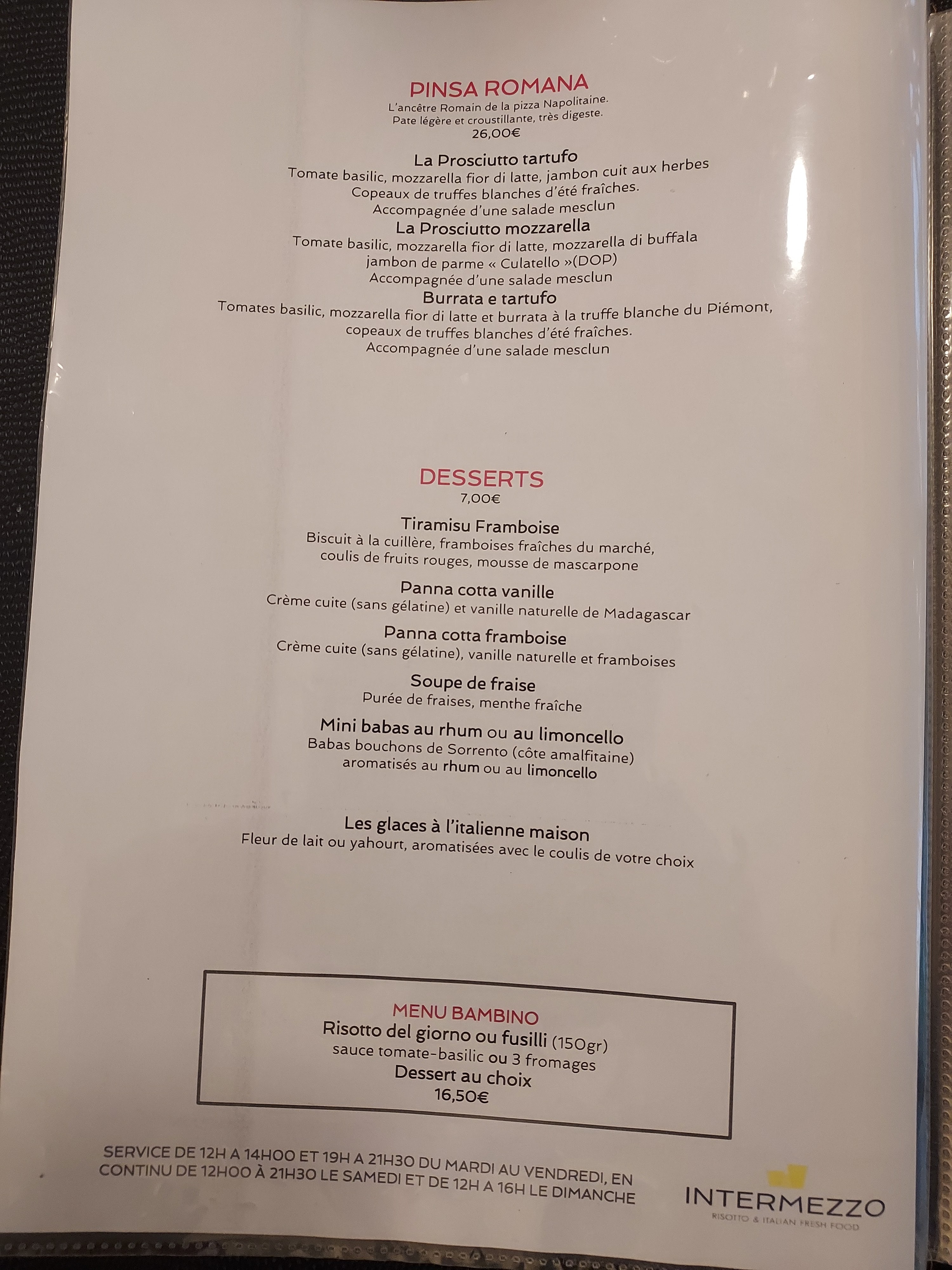 Nous étions en famille au restaurant intermezzo hier soir et comme d'habitude l'accueil était excellent ainsi que la nourriture les plats Italiens sont délicieux et copieux tout le contraire de ce que peuvent oser dire certains internautes. merci beaucoup pour votre accueil et à très bientôt. Pascal en fauteuil roulant