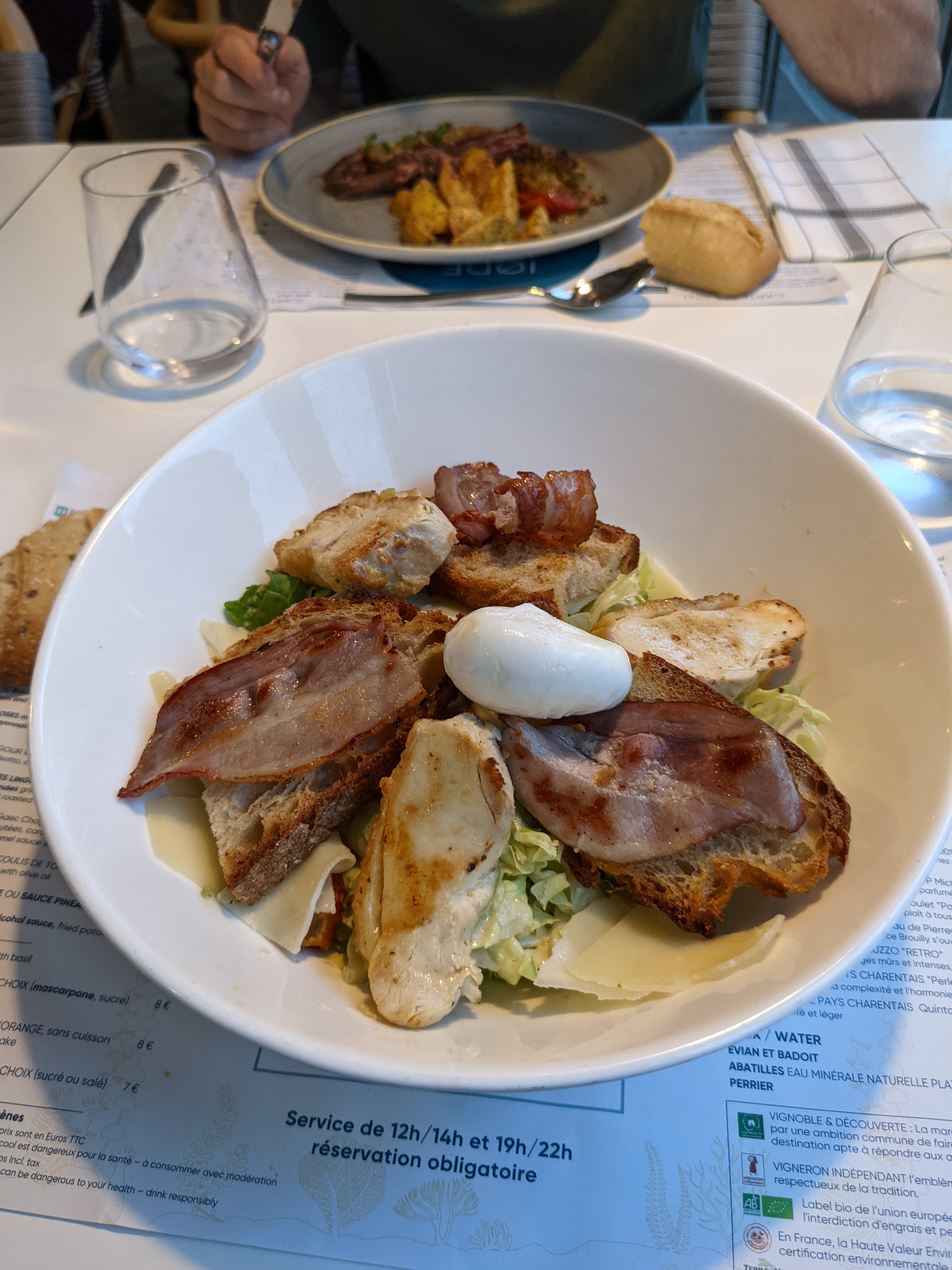 Nous aimons beaucoup venir de temps en temps boire un verre ou grignoter quelque chose les garçons du Bar sont toujours très sympathiques mais hier du côté restaurant c’était un peu plus laborieux un sentiment de déranger et une attitude et un ton nonchalant et je passe pour le reste Le plat une salade rien d’extraordinaire sauf si vous avez un lapin avec vous .. le cadre est toujours très agréable mais parfois ça ne suffit pas a vous faire oublier certains désagréments d’un service