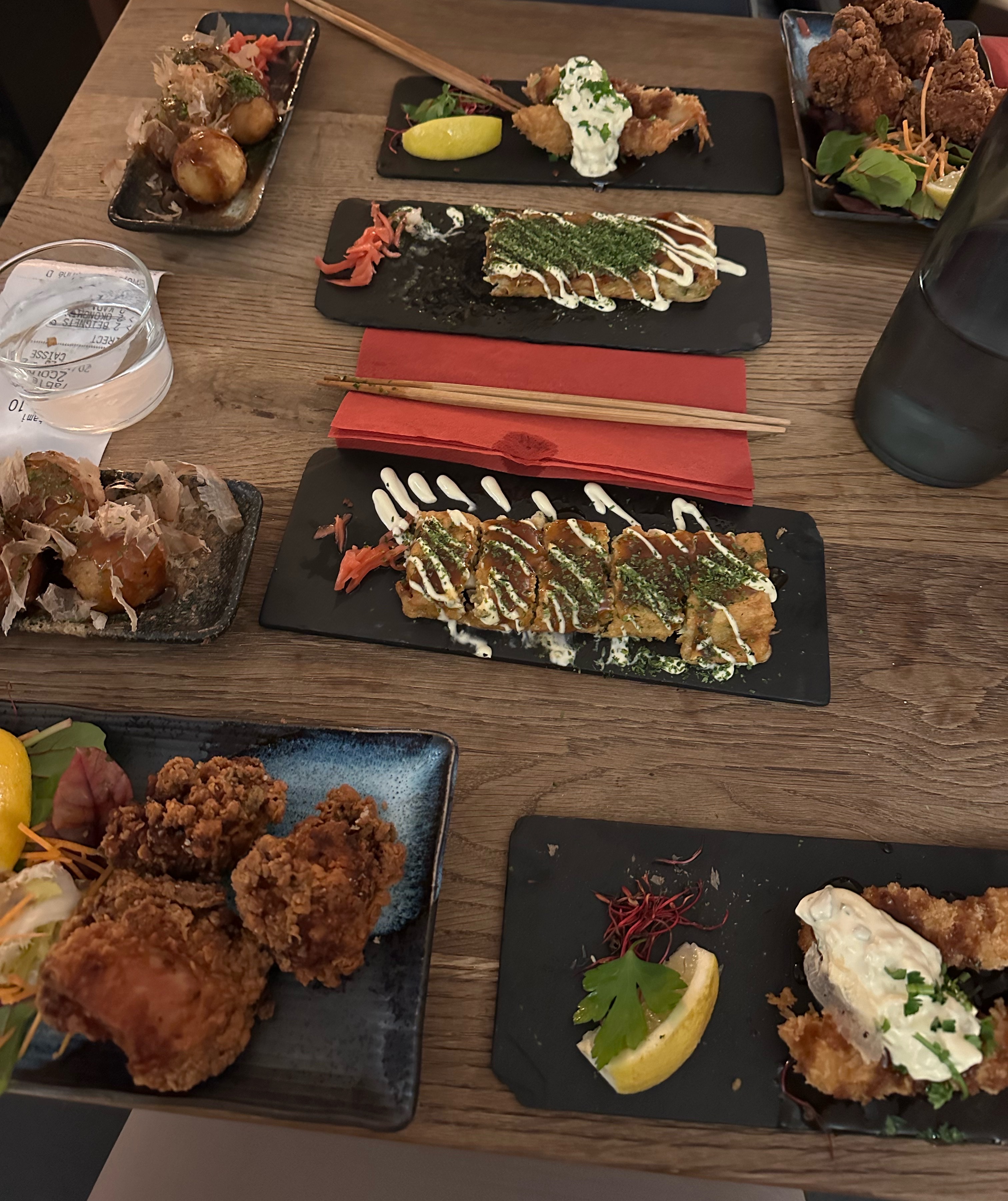 Belle découverte, belle présentation des plats. Impératif de réserver. Un peu bruyant car victimes de son succès. Ce n'est pas un restaurant, mais nombreux plats à partager entre amis avec du saké. Dépaysement culinaire.