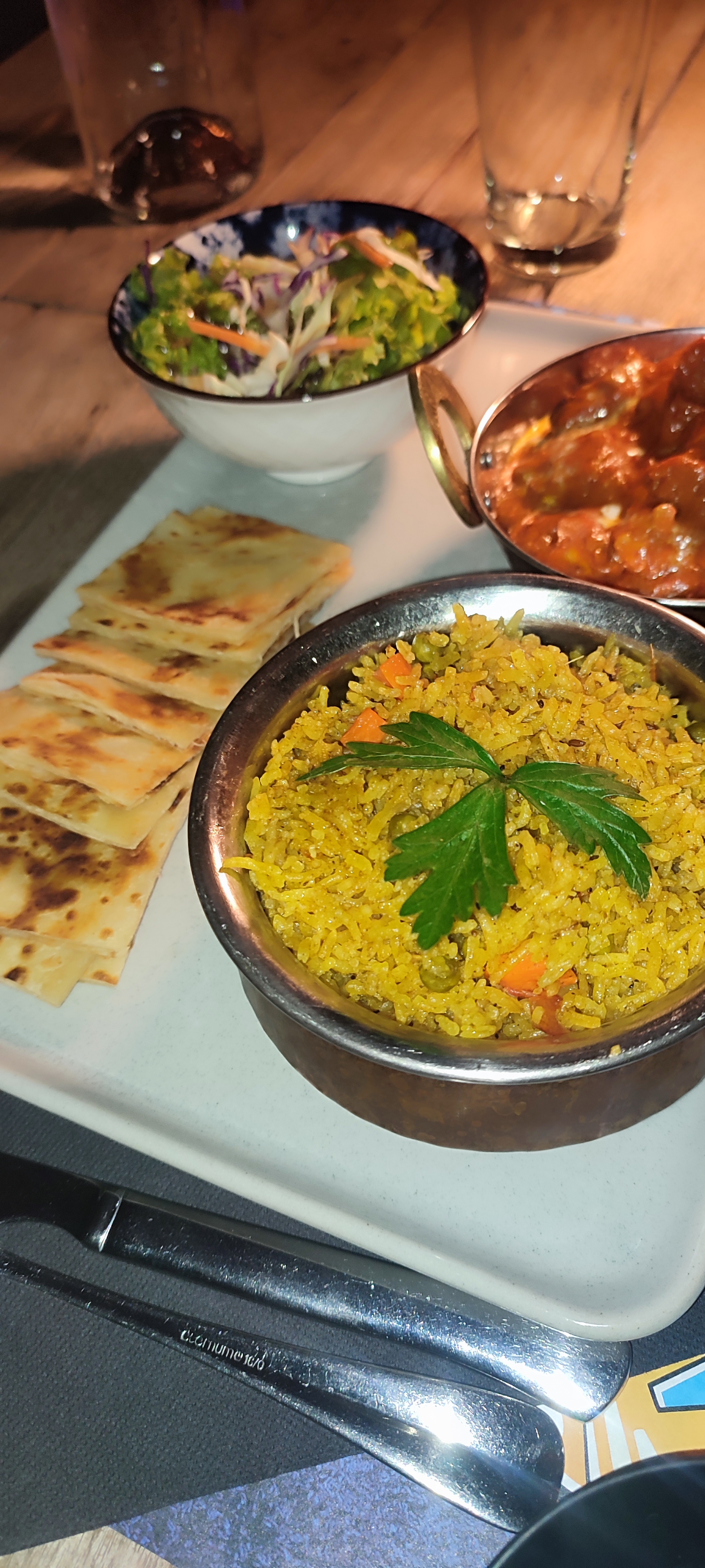 Lieu superbe , l'accueil par le personnel est très chaleureux ce qui fait directement plaisir et les plats sont succulents. Je recommande fortement le butter chicken qui est excellent ! Vous pouvez y aller les yeux fermés !