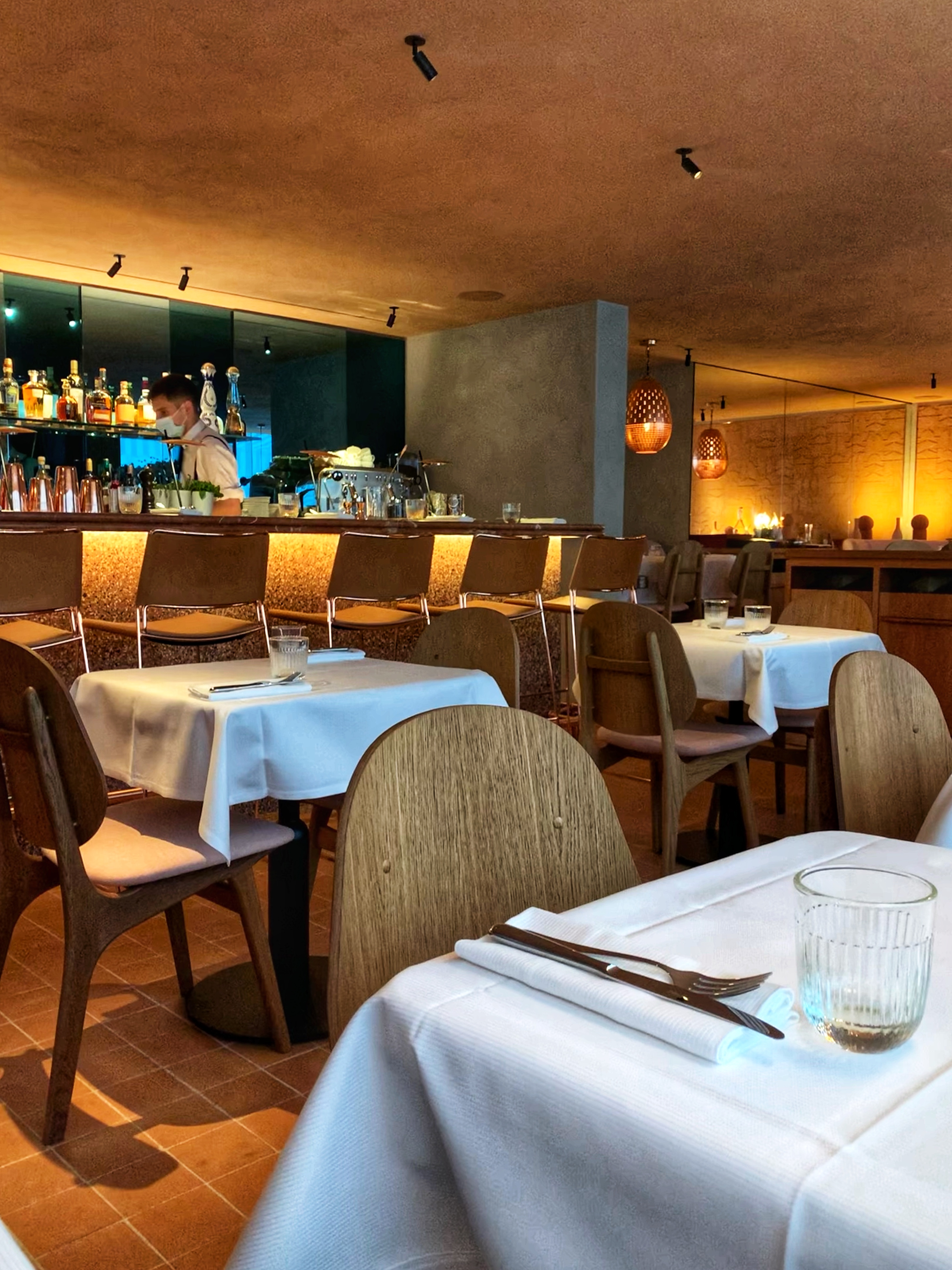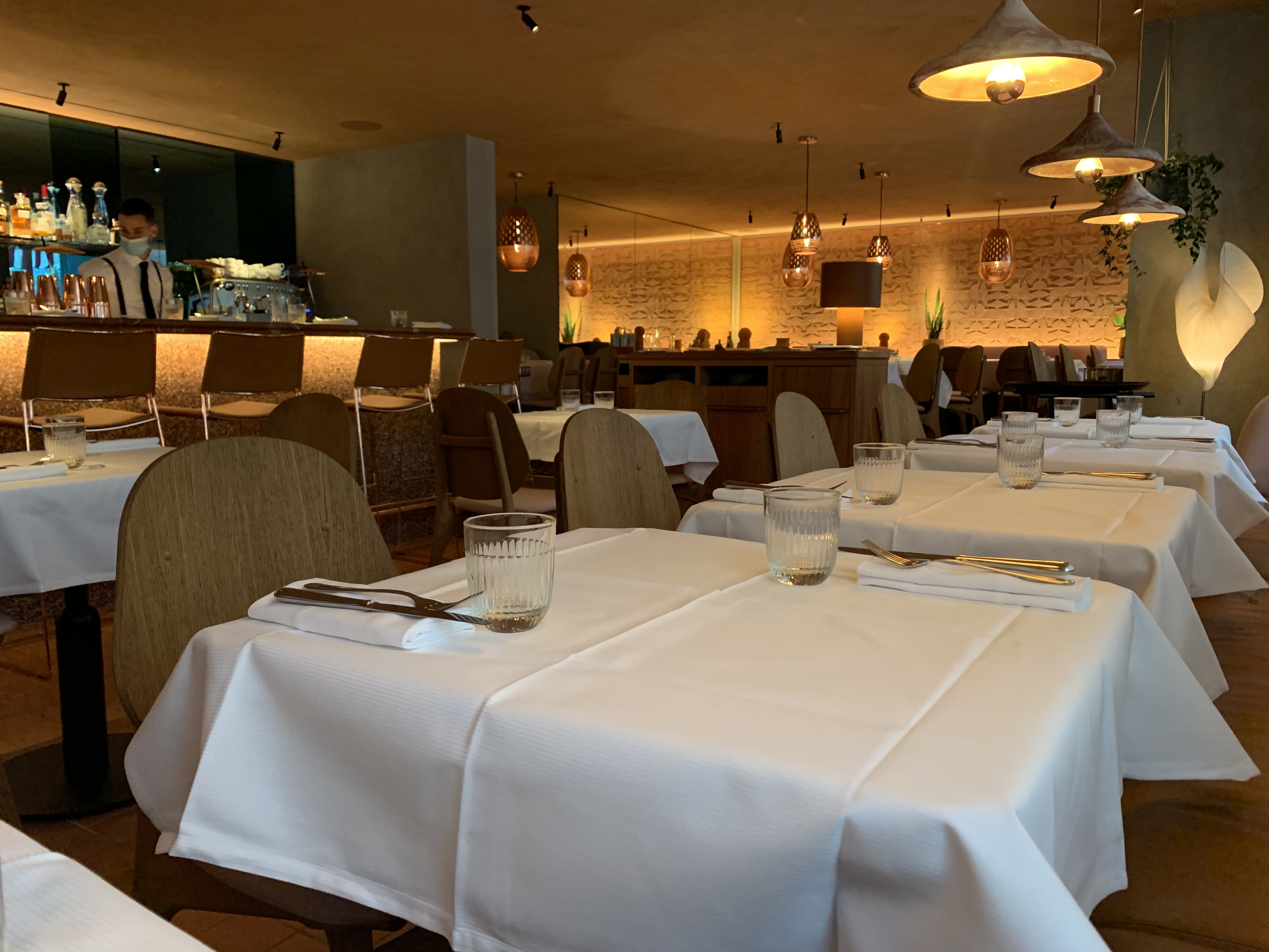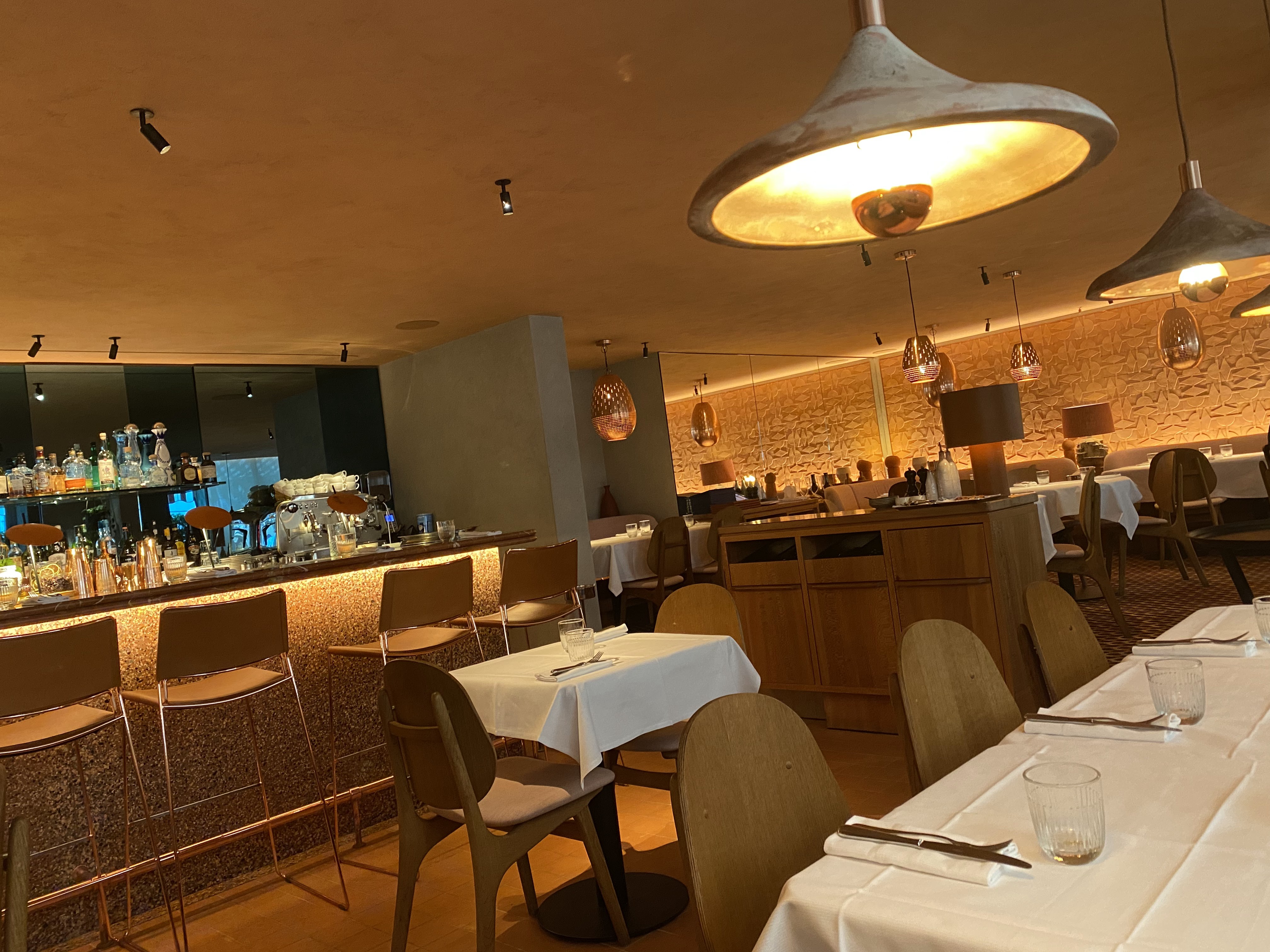 Un restaurant qui tient ses (belles) promesses. Nous avons dîné au bar avec ma femme, sur proposition du responsable car le restaurant était complet. Cela change un peu et c’est agréable, on peut observer un talentueux barman préparer les cocktails, et discuter un peu avec lui, sympathique et professionnel. Le service est soigné, pro, sans en faire trop, peut-être un peu rapide mais au moins on n’attend pas indéfiniment. Nous nous sommes régalés, les portions sont belles, les prix corrects pour le repas comme les vins pour un restaurant de cette gamme. Merci à toute l’équipe.