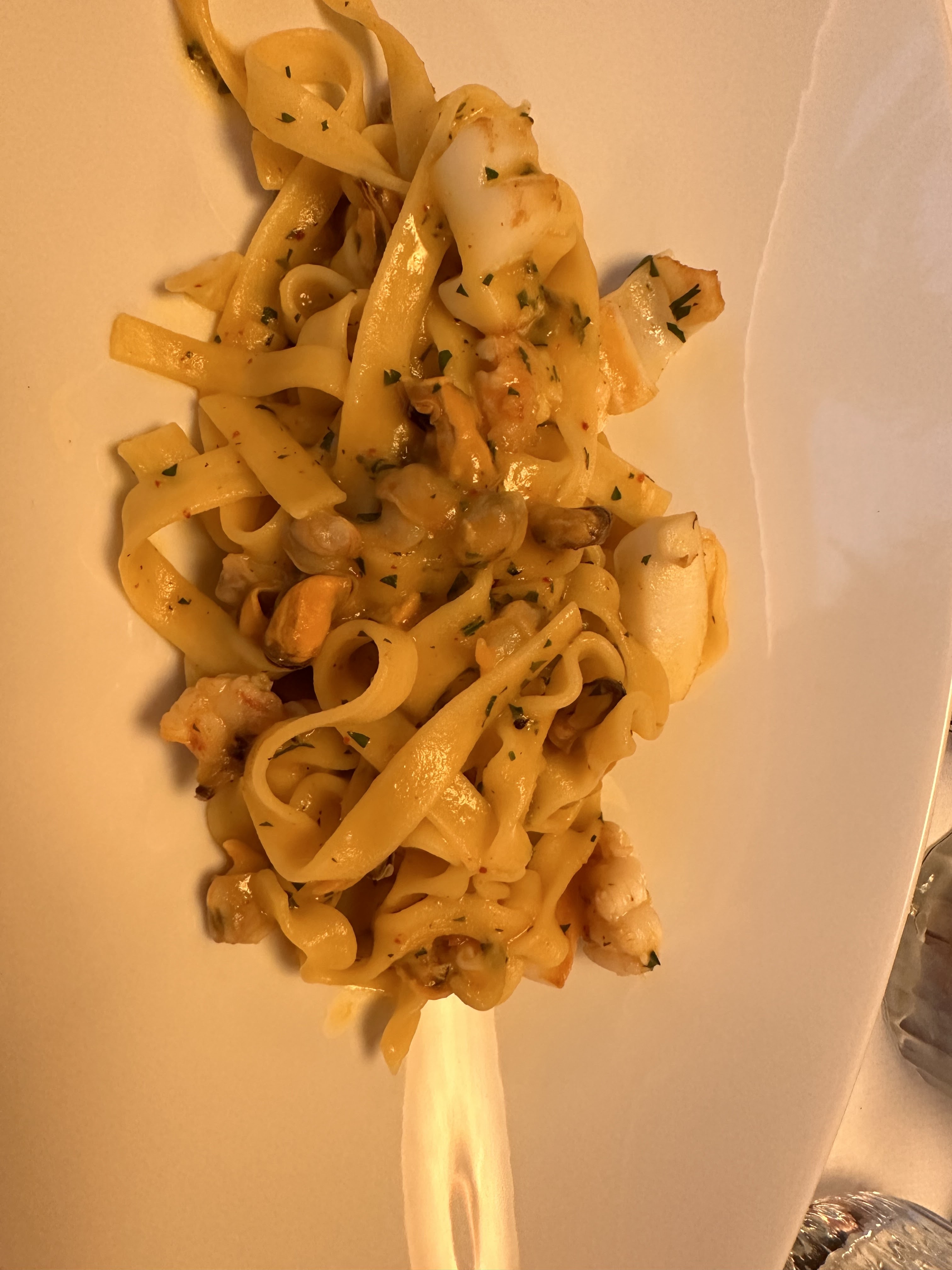 C’était délicieux ! On s’est régalé avec des pâtes au citron et des ravioles carbonara ainsi qu’un carpaccio de daurade ! Je recommande la nourriture très bonne. Néanmoins, les prix sont assez élevés et la quantité dans l’assiette est assez faible. L’emplacement est un mystère pour nous, le quartier n’était pas très bien… mais je vous conseille car très bon