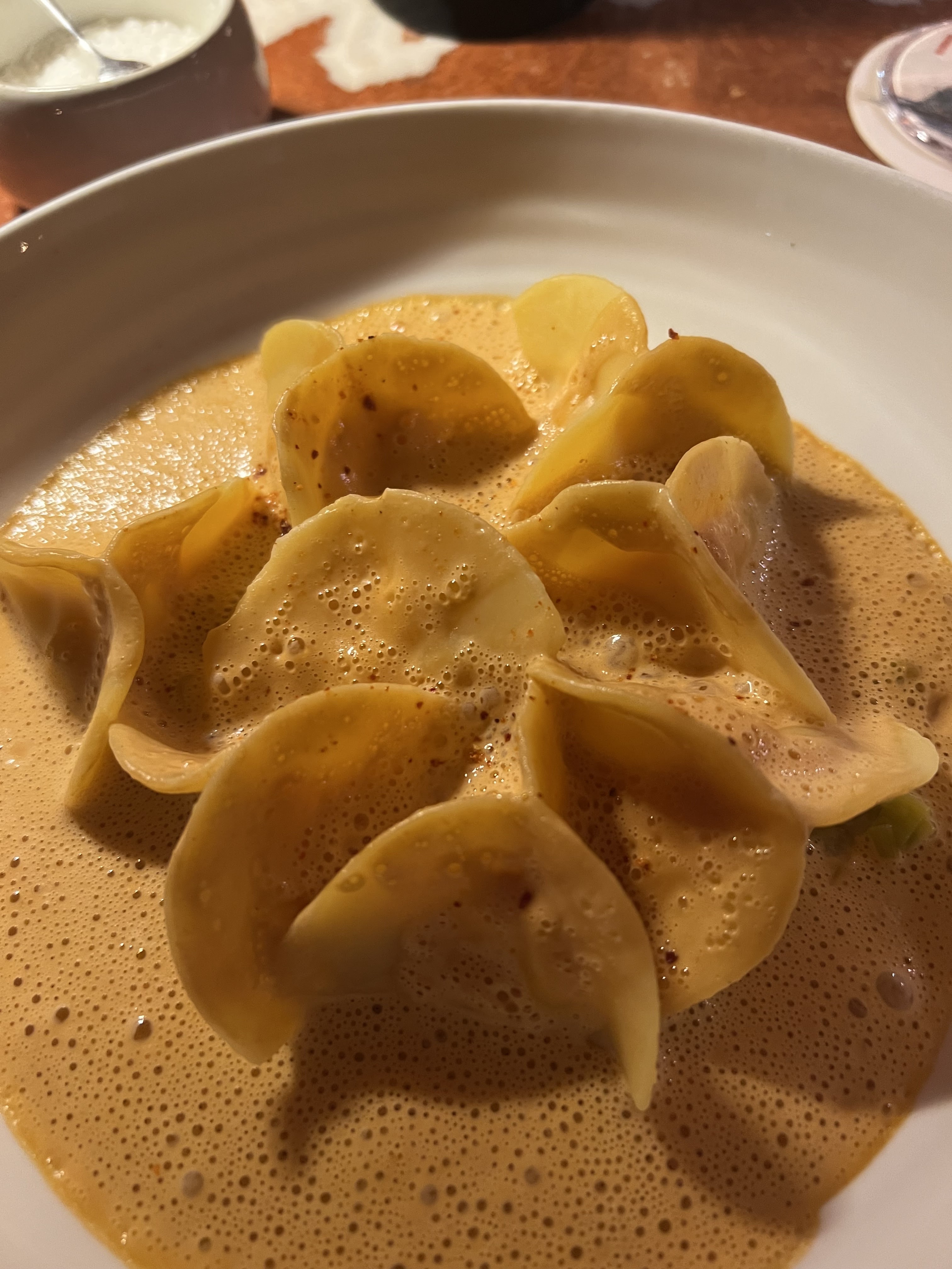 Une très belle expérience & un délice ! Le lieu est sublime & on s’y sent très bien, les serveurs sont à l’écoute et ne jugent pas sur les budgets. Le sommelier nous a parfaitement conseillé. Mention spéciale pour les raviolis sauge et les carbonara revisitées. Un peu cher.