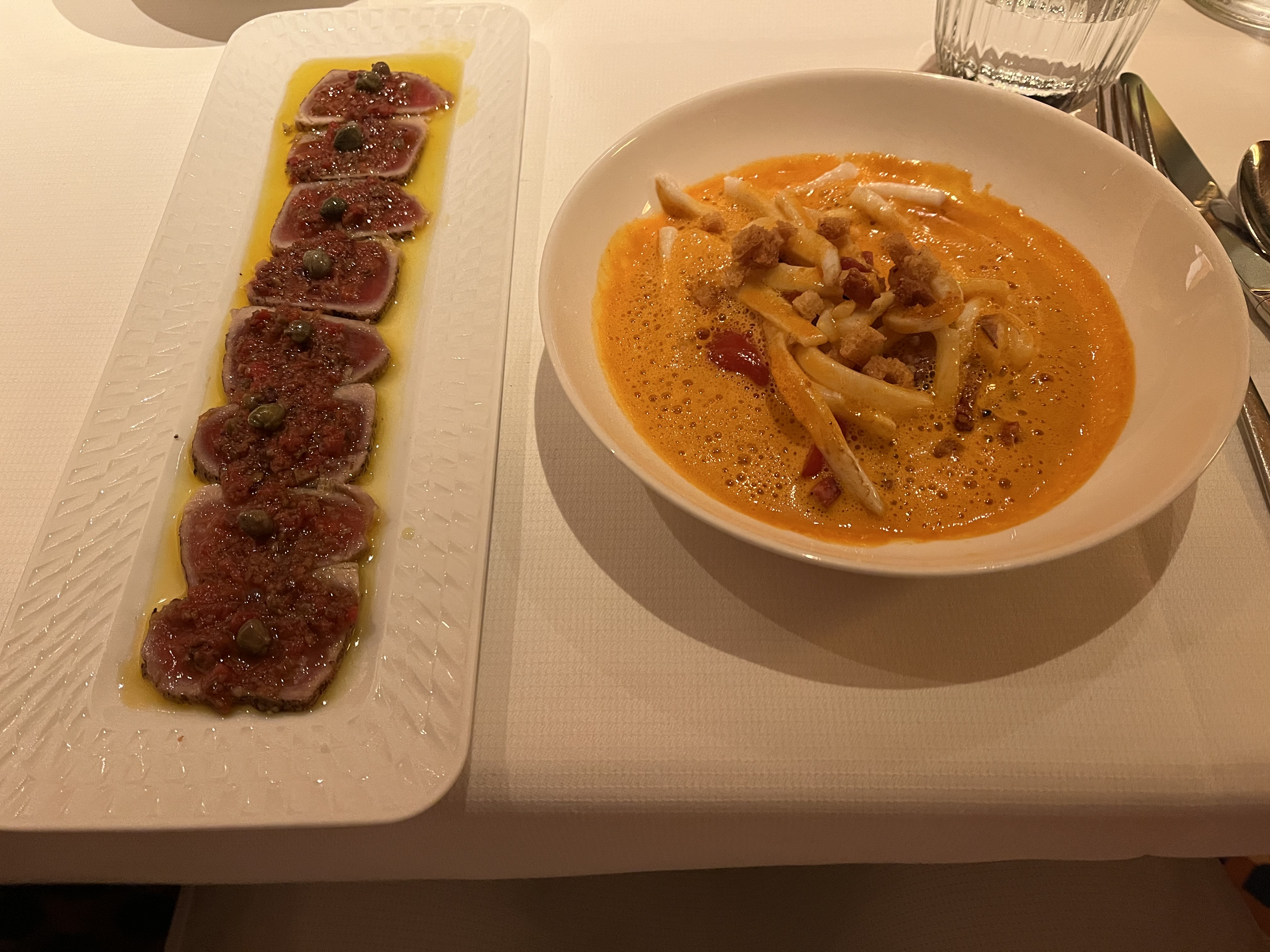 Bonjour, J'ai été invité par des amis et nous avons passé une merveilleuse soirée ! Déjà la petite fiat à l'entrée nous intriguait ! Du coup le charmant portier nous a gentiment proposé de nous prendre en photo dedans 🤩 L'ambiance du resto est très cosy et chaleureux, nous avions une très belle tables. Les cocktails sont excellents, le mien était un carribean, une vraie tuerie! Le personnel était très gentil, à l'écoute et très serviable. Les plats était tous très bon, nous avons pris deux entrés à partager à 4 ( tout est prévu pour) une pizzeta et un plat d'encornets. Pour les plats j'avais pris les ravioles de langoustines, c'était excellent, la bisque trop bonne! Et en dessert la glace noisette mais ils n'ont pas voulu nous donner la recette 😅 Bref nous avons passé un très bon moment et très bien mangé !