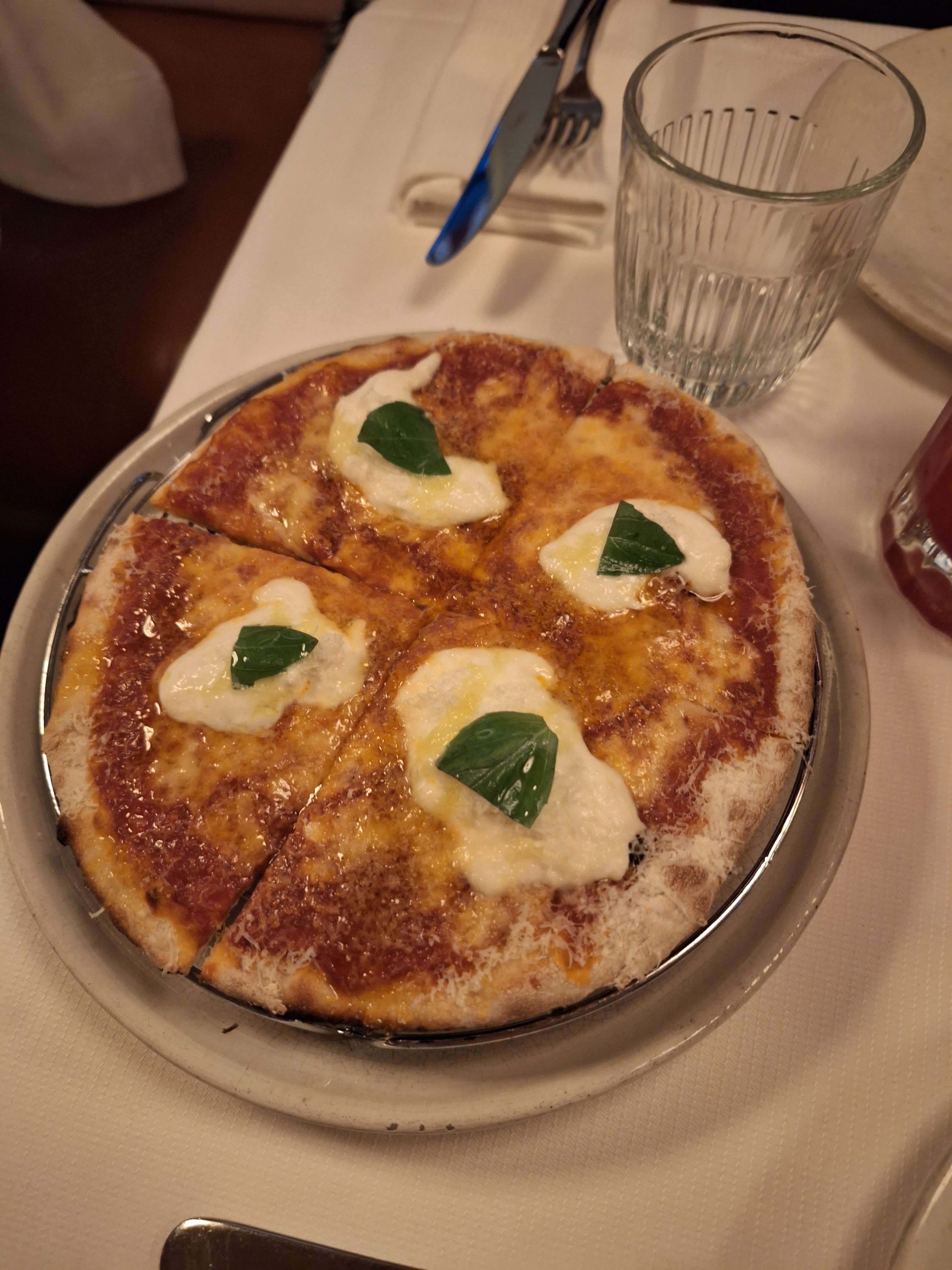 L'accueil est incroyable, la dame qui place les clients ainsi que notre serveuse (une brune à l'entrée et une blonde, carré court notre serveuse) étaient vraiment extrêmement sympathiques et aux petits soins, sans en faire trop. Venons-en aux plats : on a testé 2 cocktails sans alcool qui étaient vraiment très bons, mention spéciale à celui au basilic qui était top. La pizzette était bonne mais un peu trop tiède, par contre j'ai été agréablement surprise par sa taille. Niveau plat, j'ai été un peu déçue par ma parmigiana qui ne m'a pas semblée incroyable, au contraire des pâtes à la truffe... Mon mari les a vraiment trouvées incroyablement bonnes, il ne s'en est pas remis et n'arrête pas de m'en parler 😅 Le dessert était bon, mais sans plus. Nous reviendrons avec plaisir lors de notre prochain séjour à Paris!