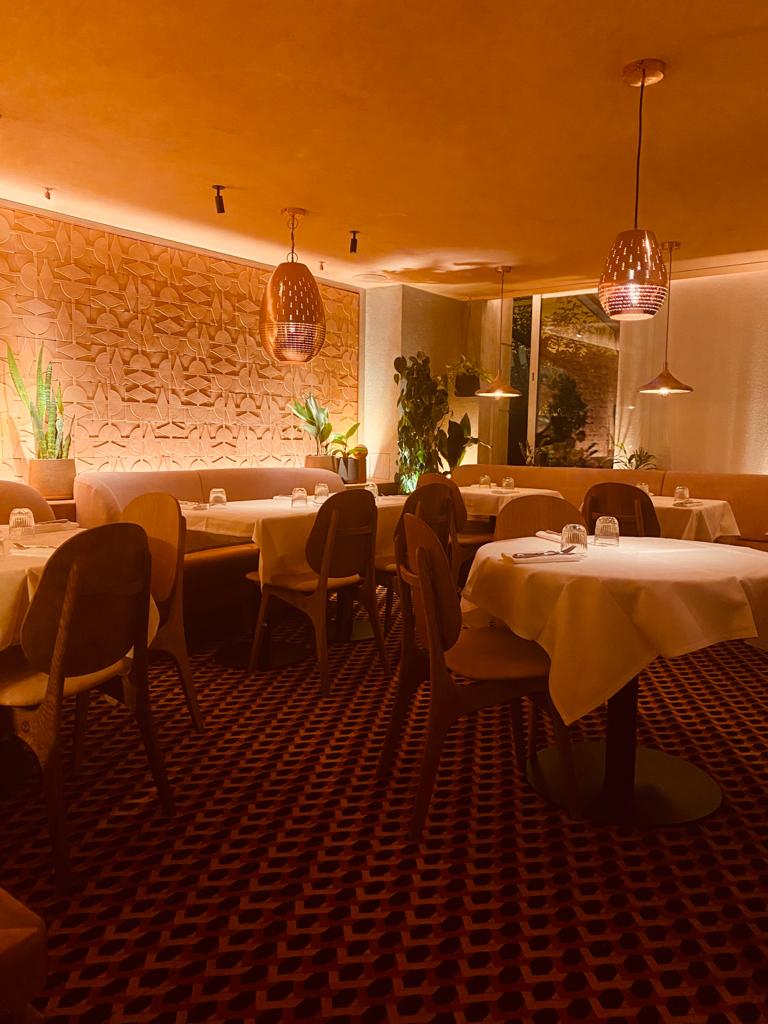 très beau restaurant où la décoration est flatteuse et originale dans les tons cuivrés, les plats y sont délicieux même si très chers, dommage que parfois ils ne soient pas assez chauds et qu'on nous presse dans le 1er service à partir, pour un endroit comme celui-là on aimerait prendre son temps, je déconseille vivement les samedis, pour y être allés en semaine c'est beaucoup plus efficace et agréable