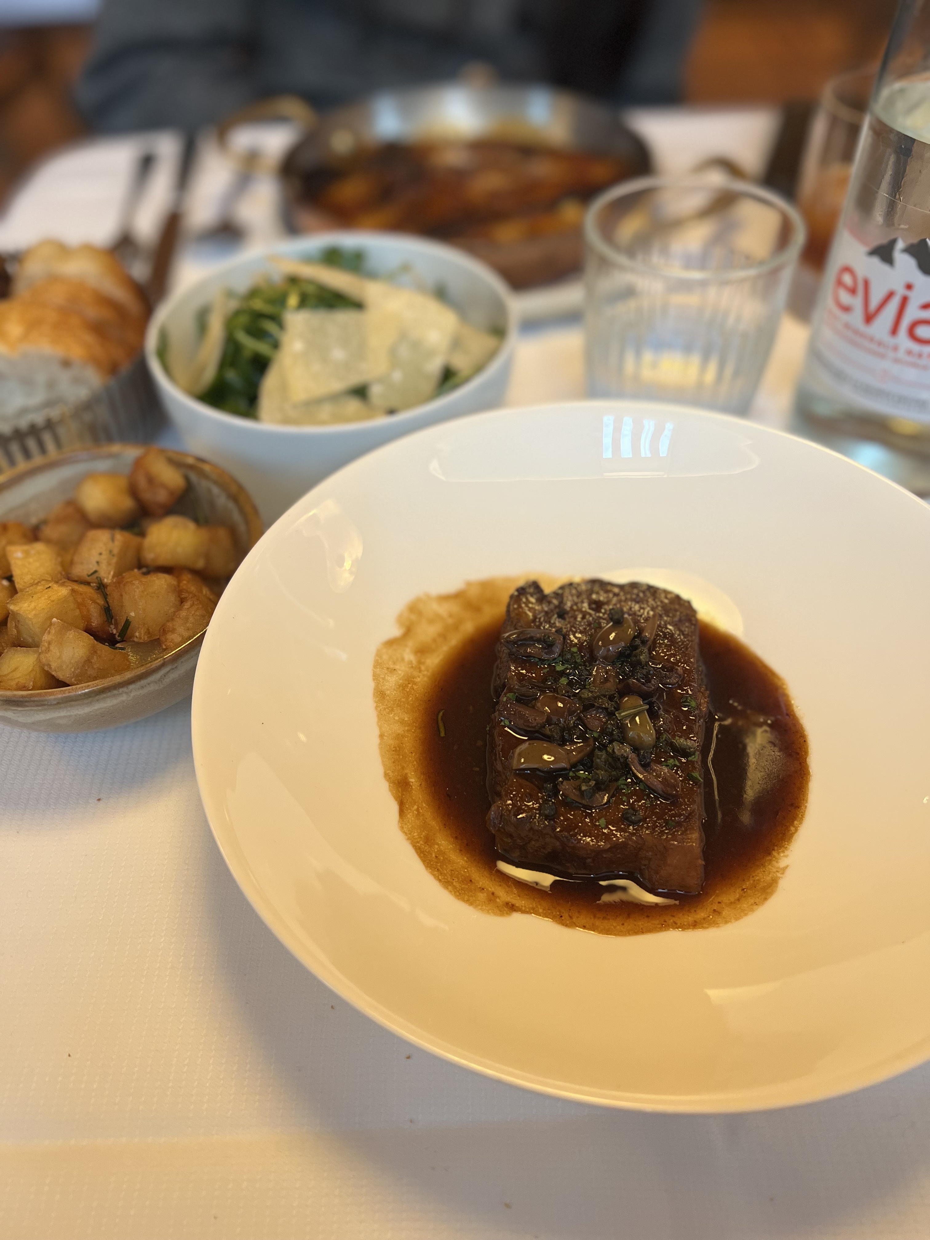Une telle attention aux détails et aux saveurs subtiles que j'étais triste d'être rassasié à la fin du repas. La viande était excellente et très facile à couper, sans parler de la cuisson parfaite. Les raviolis à la ricotta et à la truffe fondent dans la bouche et laissent derrière eux la saveur crémeuse de la truffe. Fortement recommandé bien qu'un peu cher.