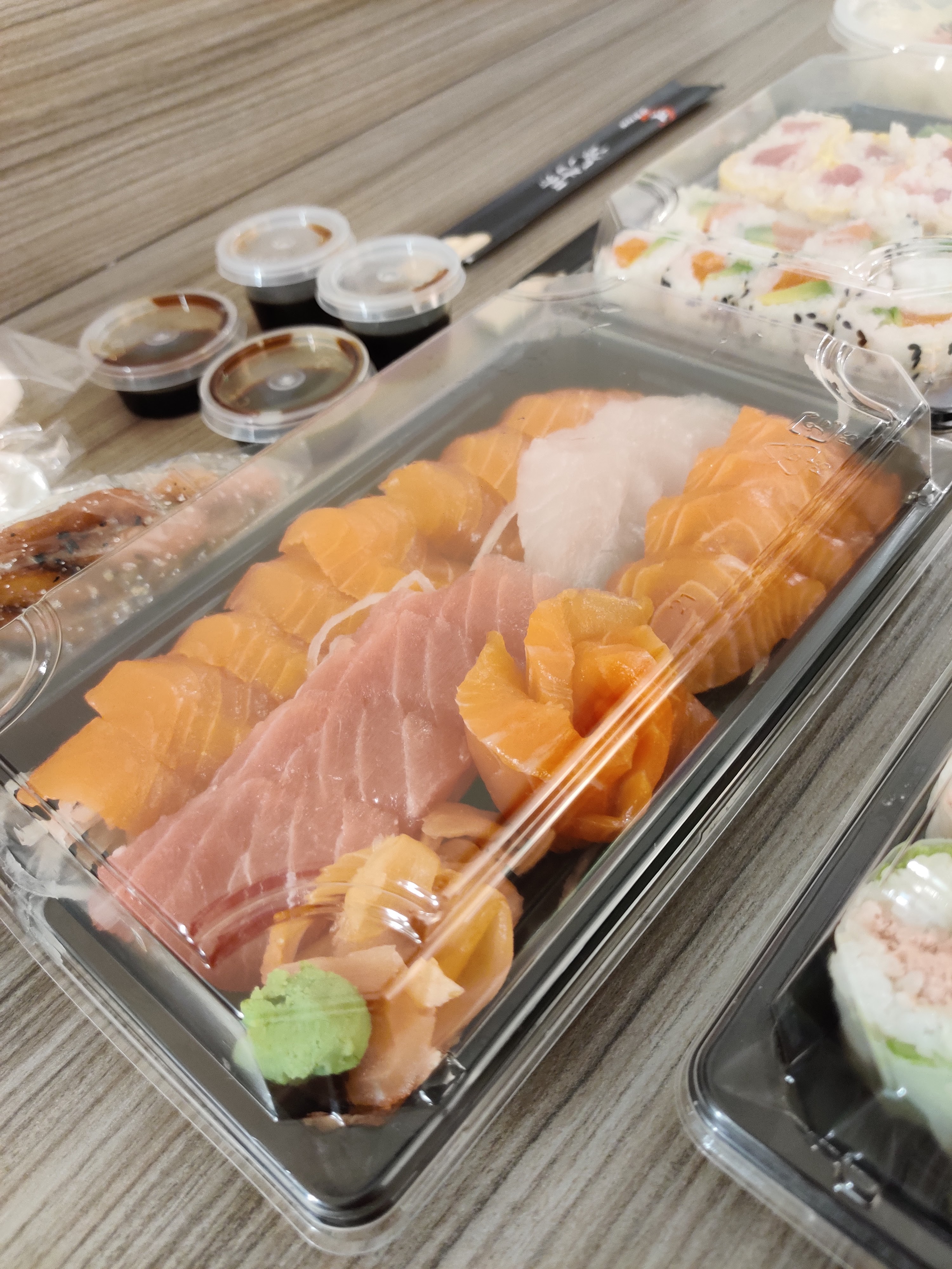 Les makis, sushis et surtout les sashimis sont de très bonne qualité, le livreur très serviable et il y avait même des fritures de beignets sucré en surprise !