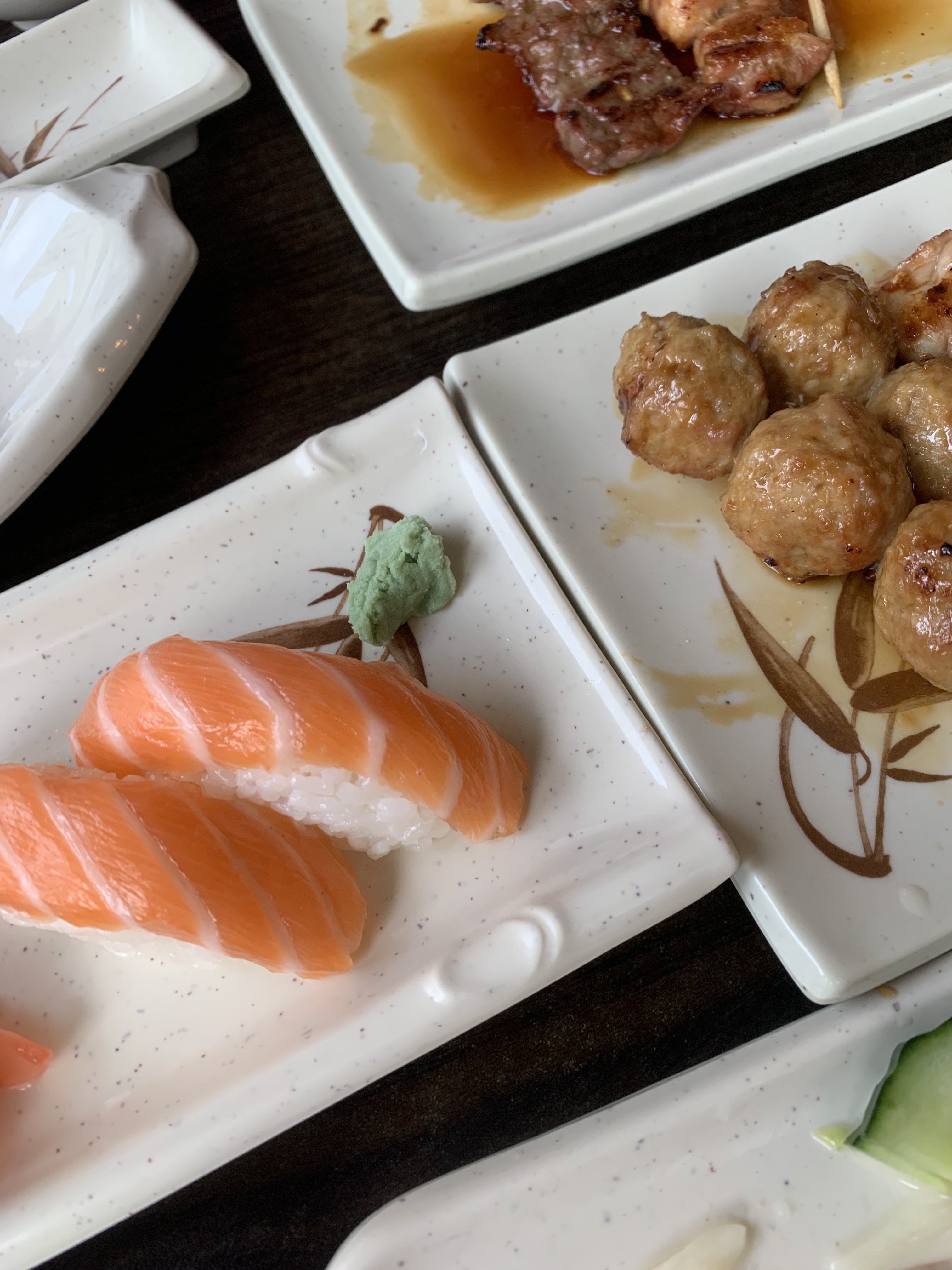 Au départ je voulais aller dans un restaurant à volonté mais mes amies ont préféré aller là. Au final je ne suis pas du tout déçu j’ai même été très surpris par le service. Le personnel est adorable et très généreux. La soupe contient beaucoup de champignons et oignon, pas juste de l’eau. Le poisson a bon goût et la viande également, ce n’est pas bourré de sucre. Le wasabi était ok, je n’ai pas trop d’avis dessus n’étant pas assez expert. Bref au final je recommande allez-y !!!