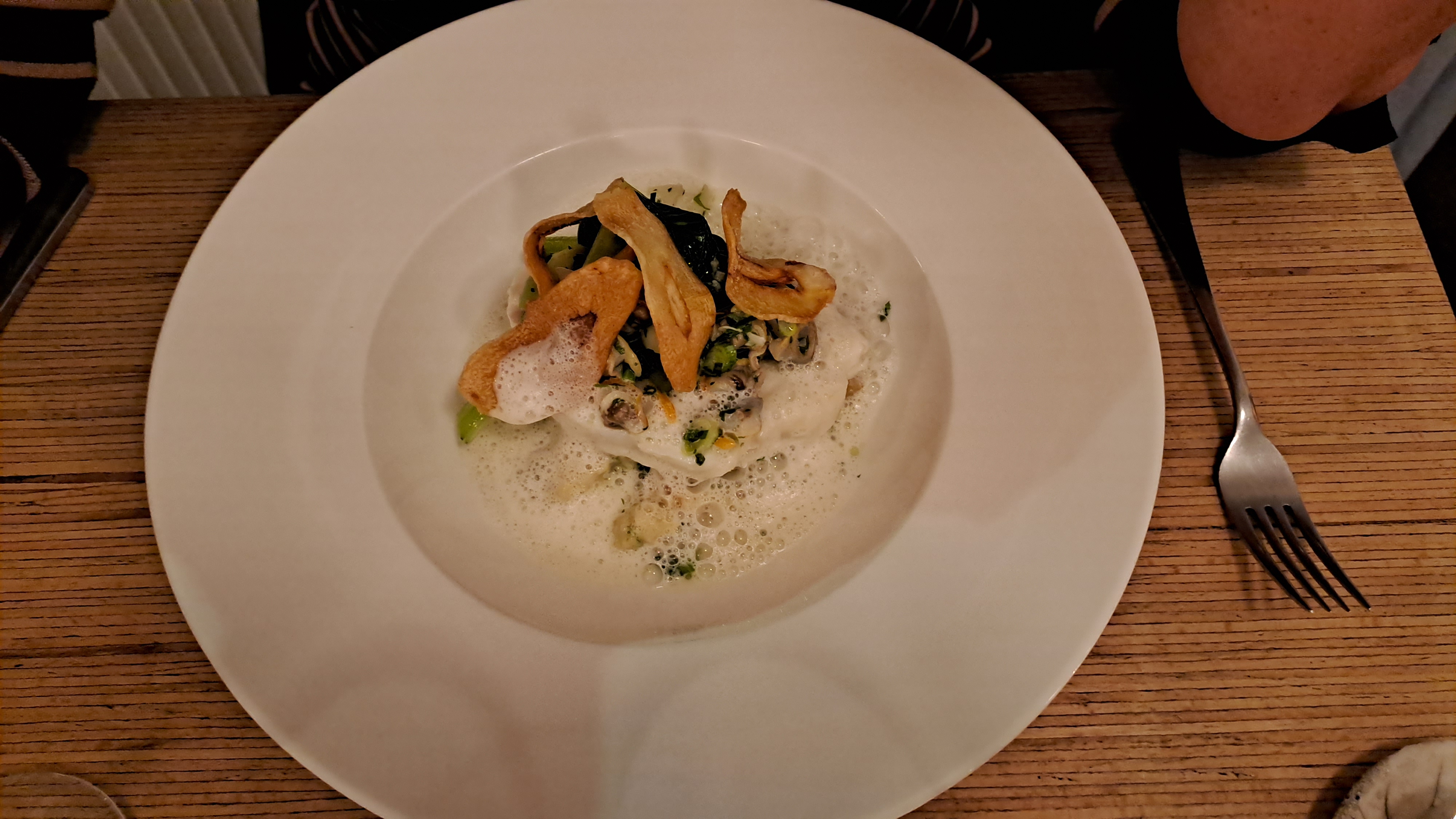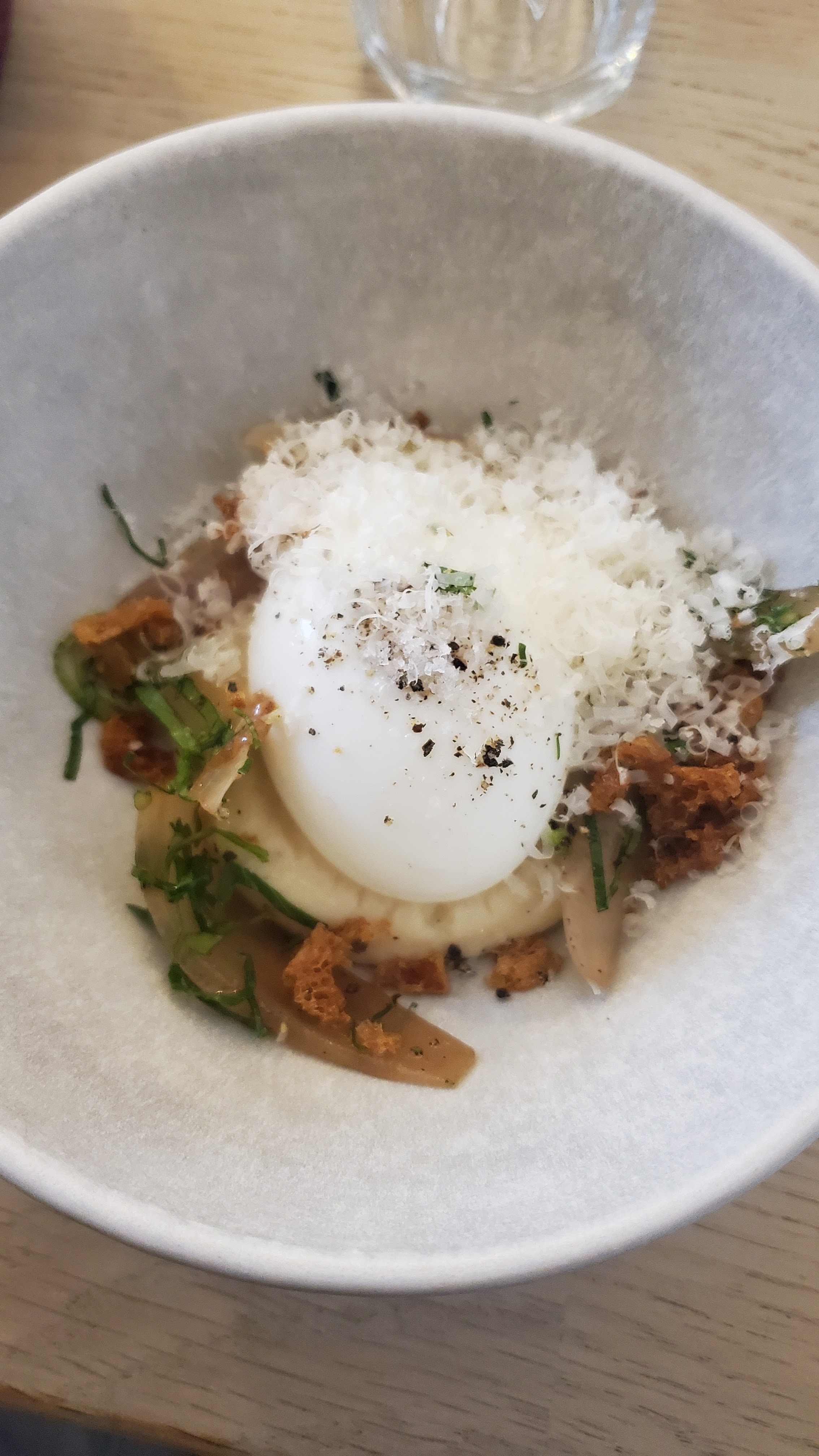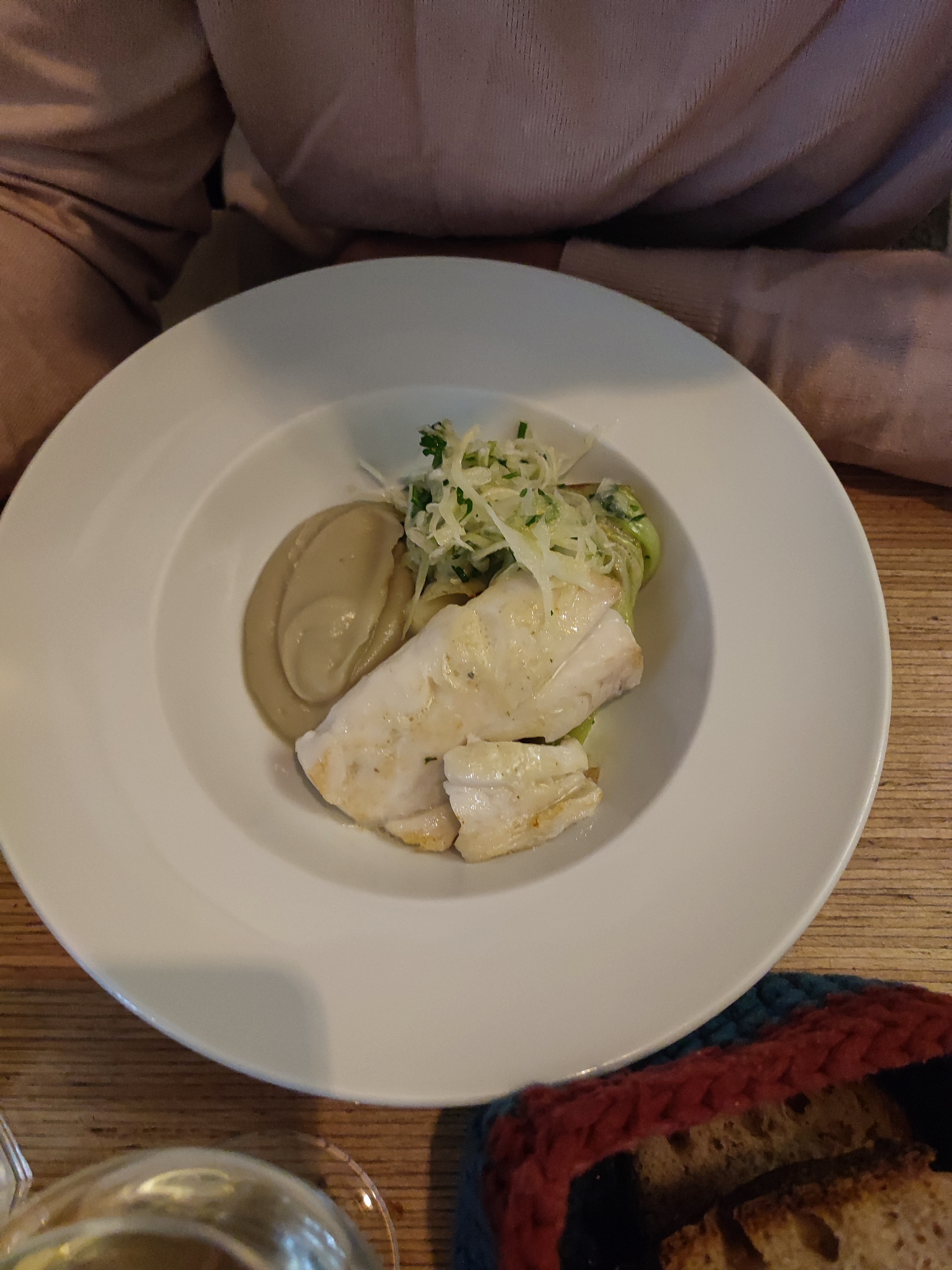 Très bon restaurant, menu avec 2 choix à chaque fois donc assurés d'avoir des produits frais. Très fin et jolis plats, une belle trouvaille et beau cadre. Entrée poireaux braisés, sauce gorgonzola , Plat tielle de poulpe et fenouil braisé Dessert pommes rôties, daquoise et crème de noix🤩 J'oubliais tout ça pour 18,50€ le midi...