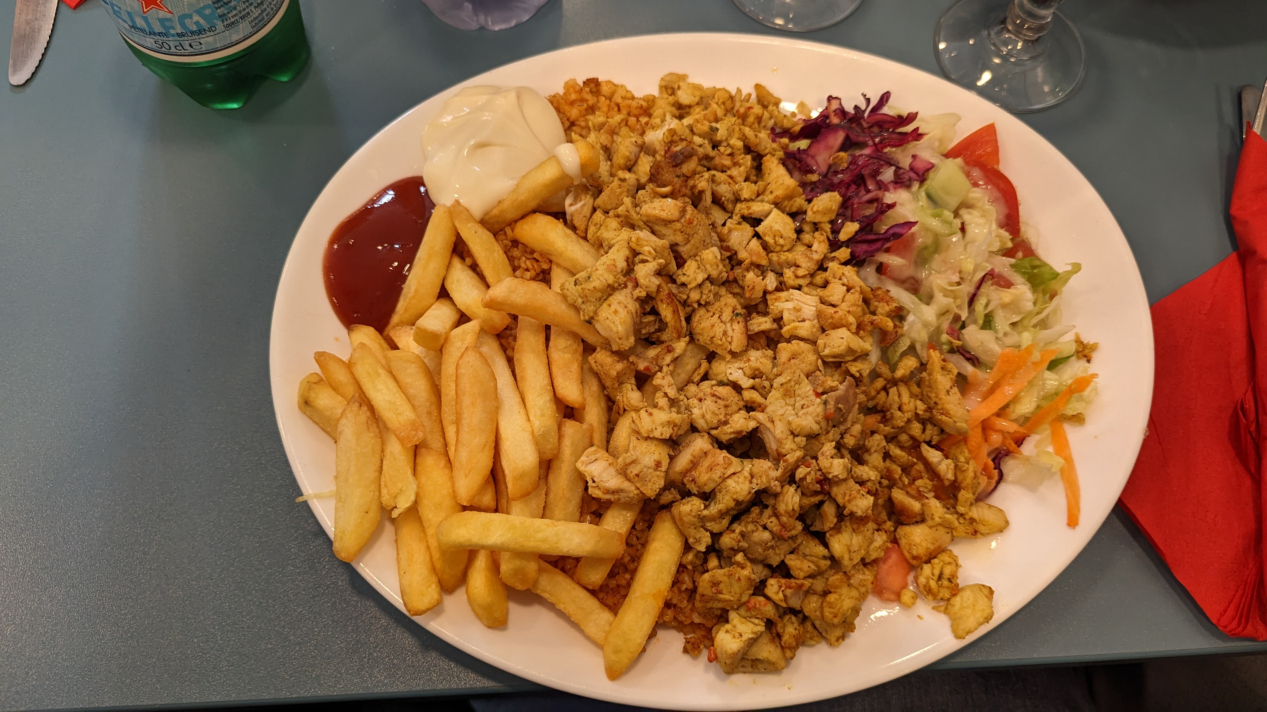 Très moyen en goût, viande kebab trop fade, poulet pas top au goût trop caoutchouc, prix correct mais vraiment pas agréable en bouche. Il y a meilleur ailleurs.