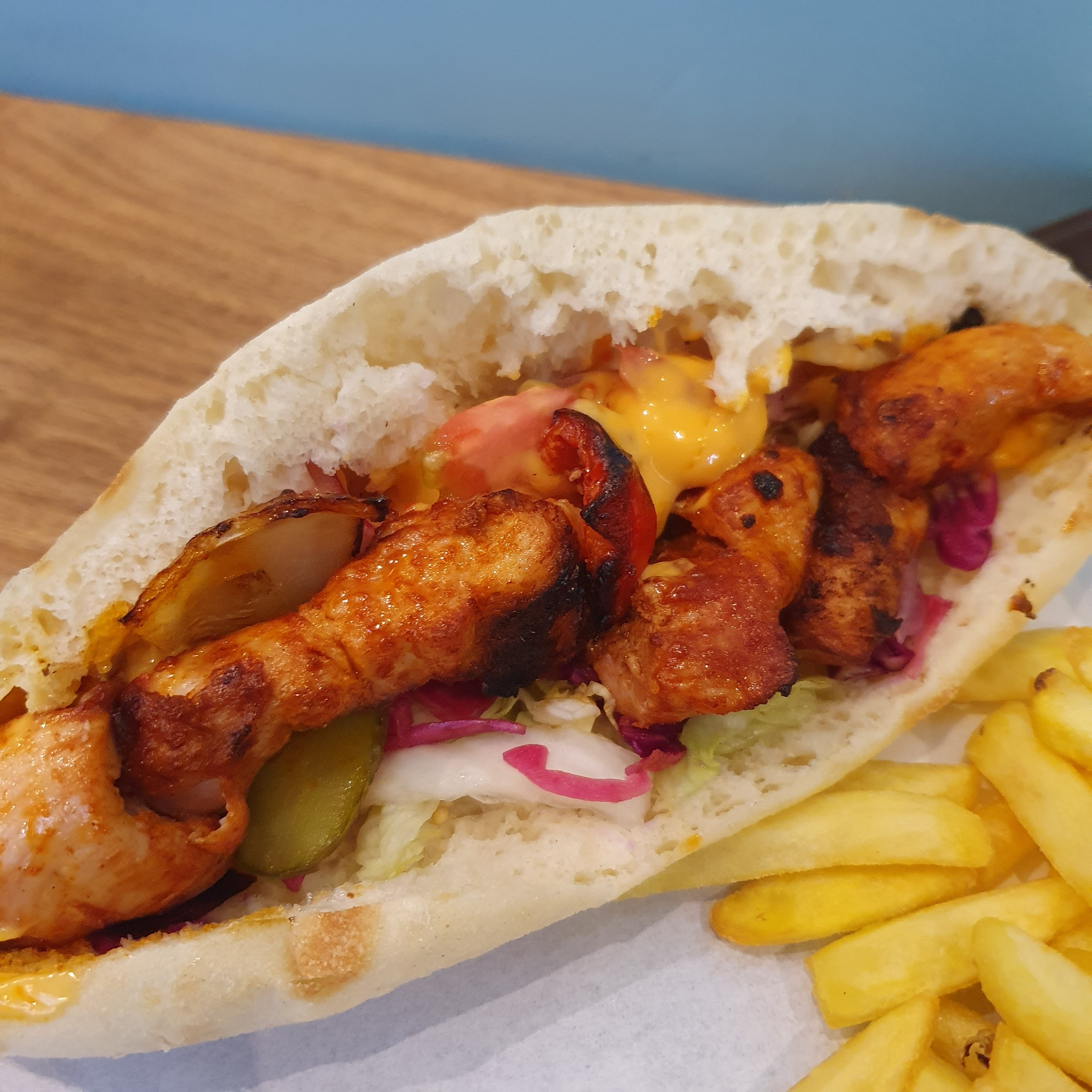 Très bon kebab cuit au feu de bois, gérant très gentil, très propre, et bon rapport qualité prix. A tester!