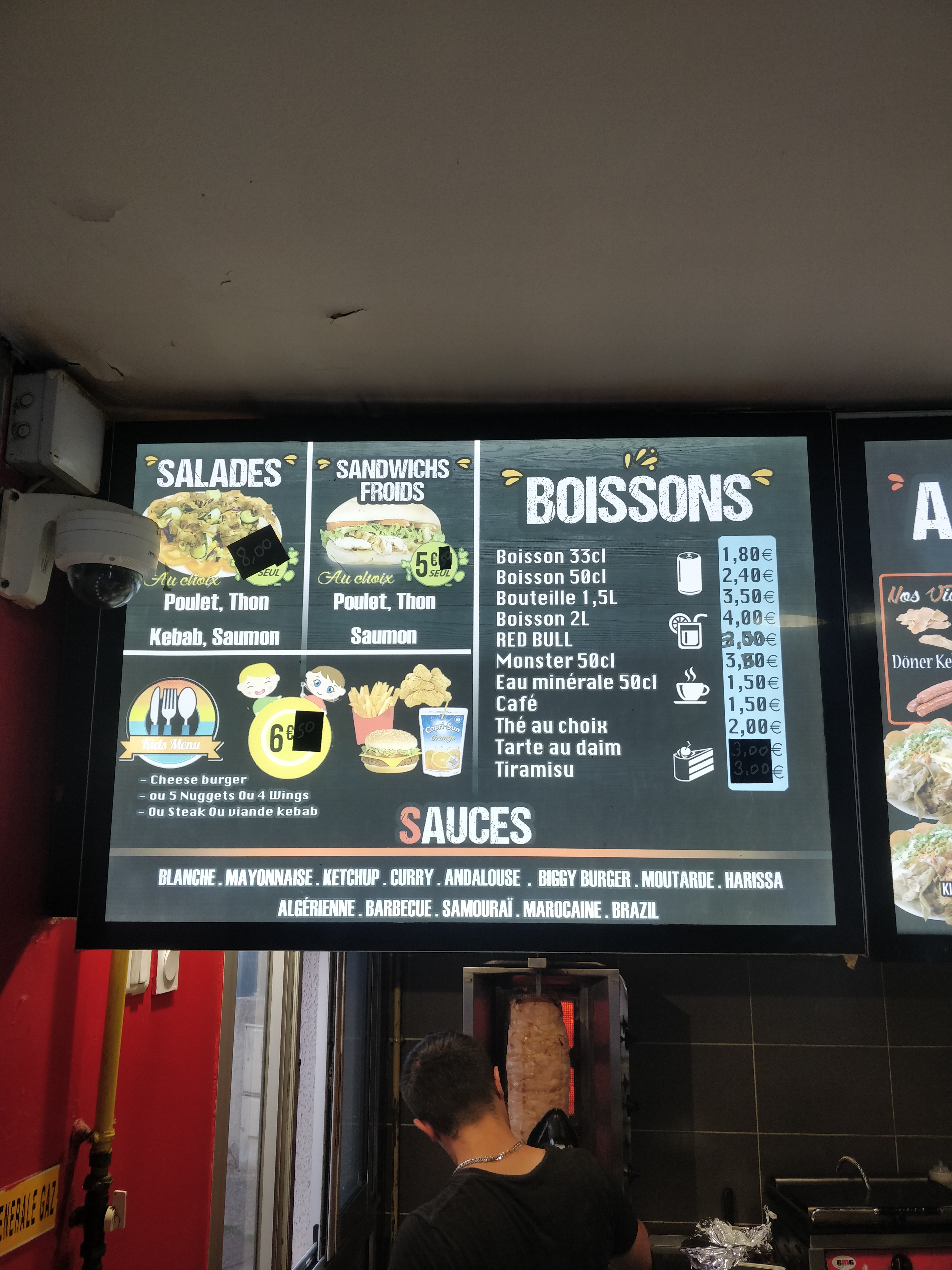 Commande par uber, les frites sont dur et decongelée, aucune sauce dans le tacos et le kebab vraiment pas bon il était fade et sans saveur, pourtant avant ils étaient délicieux, decus mais contente de m'en être rendu compte je ne reviendrai plus.