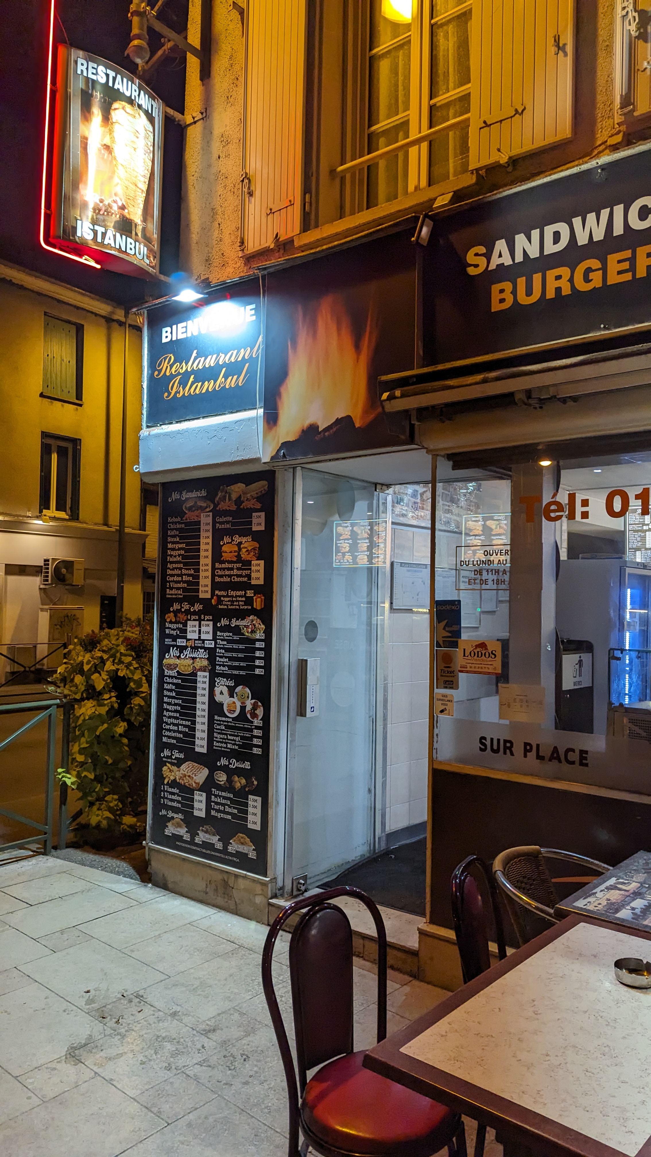 TRES BON ACCUEIL C'est un minimum ....mais de nos jours, on n'a pas toujours un bon accueil. Typique gastronomie Turc, on trouve en accompagnement le mixte salade, le blé, les frites et .... du riz blanc . Les nuggets, pas top. Le reste très bien. Le lieu simple, assez petit , mais bien aménagé. Service jusqu' à 15h Pas de surprise :-)