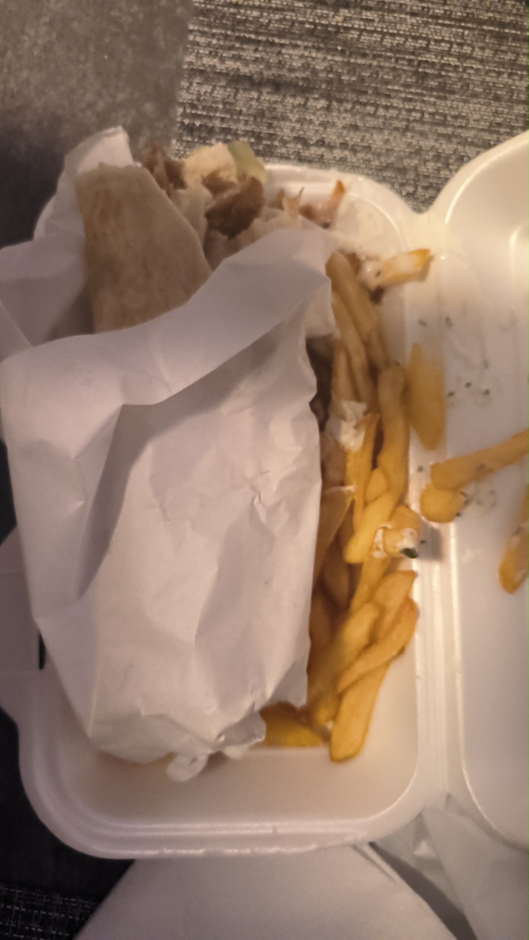 Kebab super bon, sympa, accueil agréable, c’était tellement bon que même mon ventre en pouvais plus, la viande et le pain et les frites super, malgré un p’tit souci dans la commande mais rien de grave ça arrive quand y a trop de bruit mais sinon c’est super j’ai trop adorer 🥰