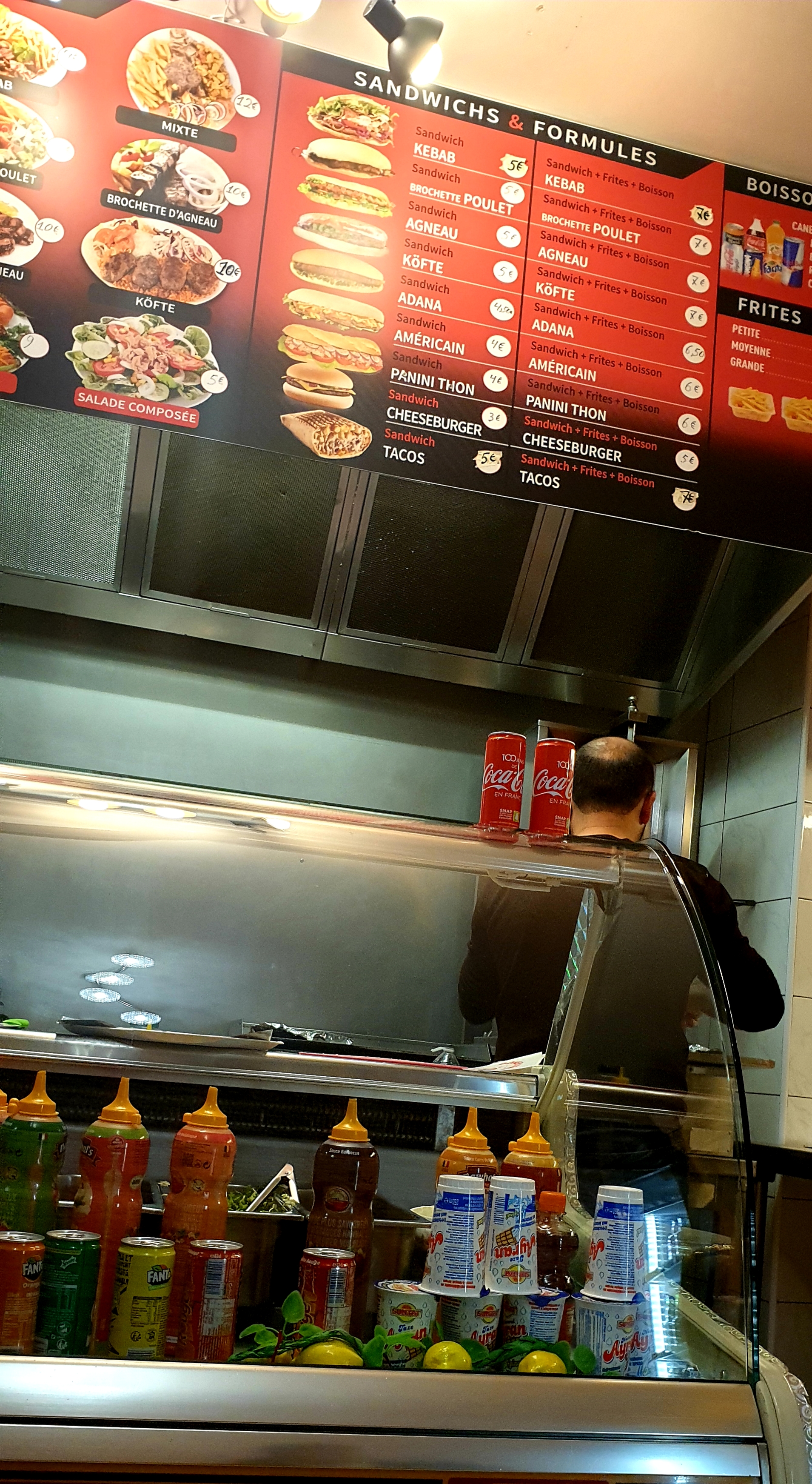 Pas accueillant, Menu kebab assez chère pour la petite quantité de viande servis dans le kebab, Frite pas top, Sauce blanche maison pas top, manque d’hygiène