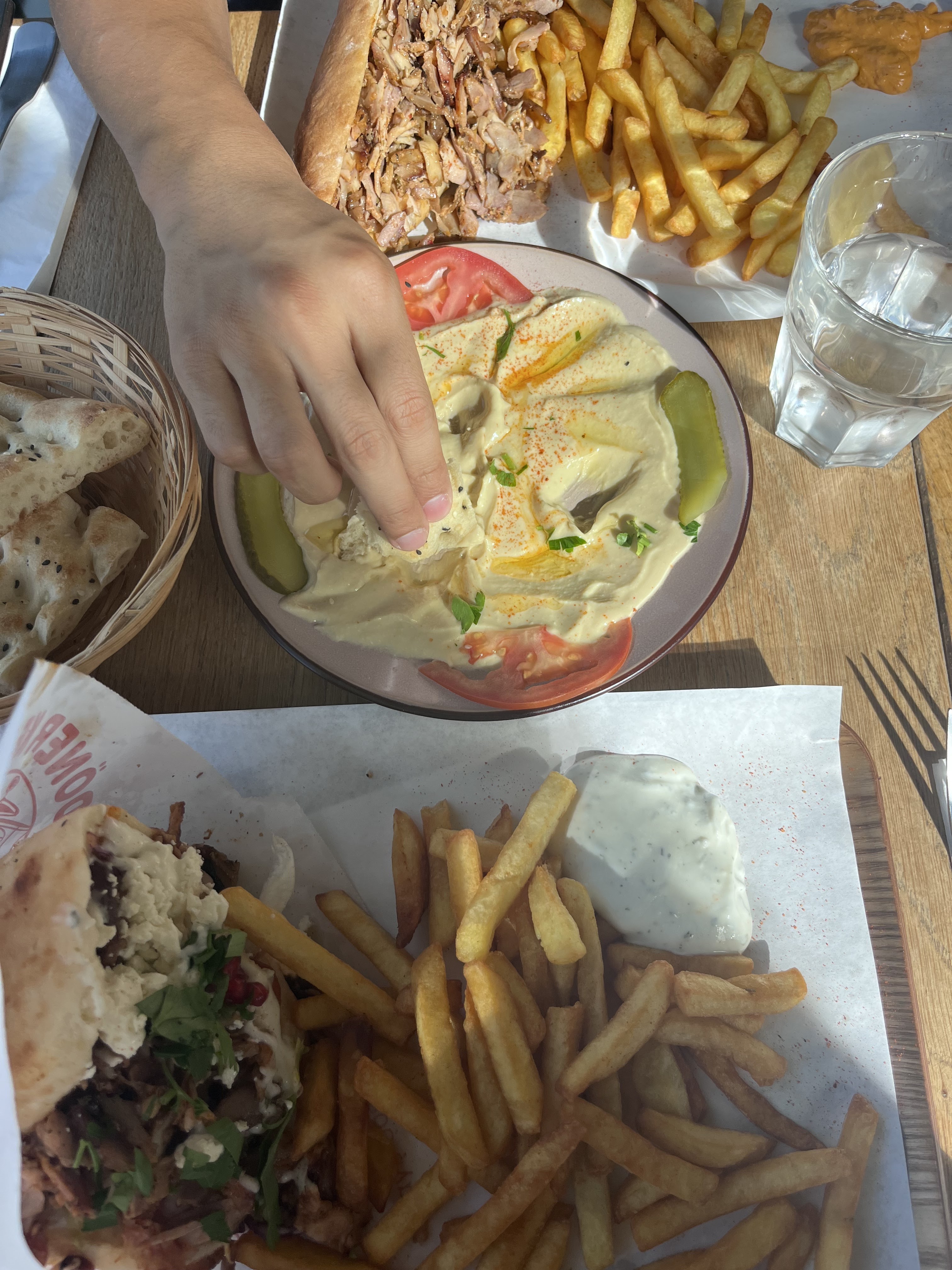 J'ai jeûné toute la journé et je voulais me faire plaisir...Le metzé est de très mauvaise qualité, je me suis fait livré et je n'ai pas pu le manger. Les falafals encore pire, petit sec, cramés et aucun gout, le sandwich avec 3 frites sèches qui se battent en duel, vraiment horrible ! Je commande regulierement un peu partout mais là, si vous voukez manger de la bonne nourriture, c'est le resto a éviter ABSOLUMENT ! Je vous mets en photo le falafal indigeste et le reste, le hommos rien qu'a voir la texture...!🧐😵💫