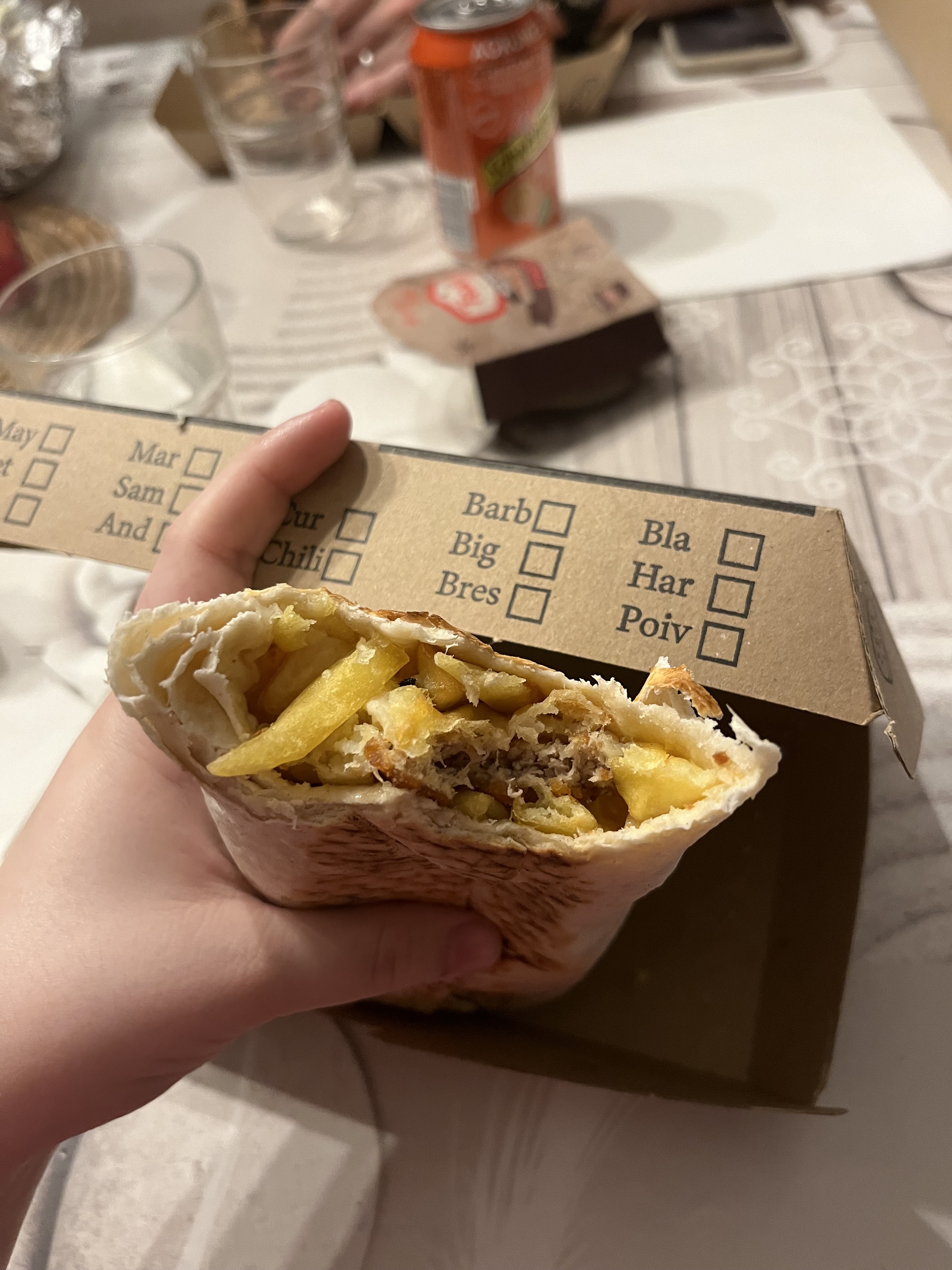 Arrivé a 22h40, j'étais pas sûr d'être servit. Service rapide, bien garni voir un peu trop (à mon goût). Très serviable et respectueux.. Beaucoup de place pour s'installer et manger tranquillement..