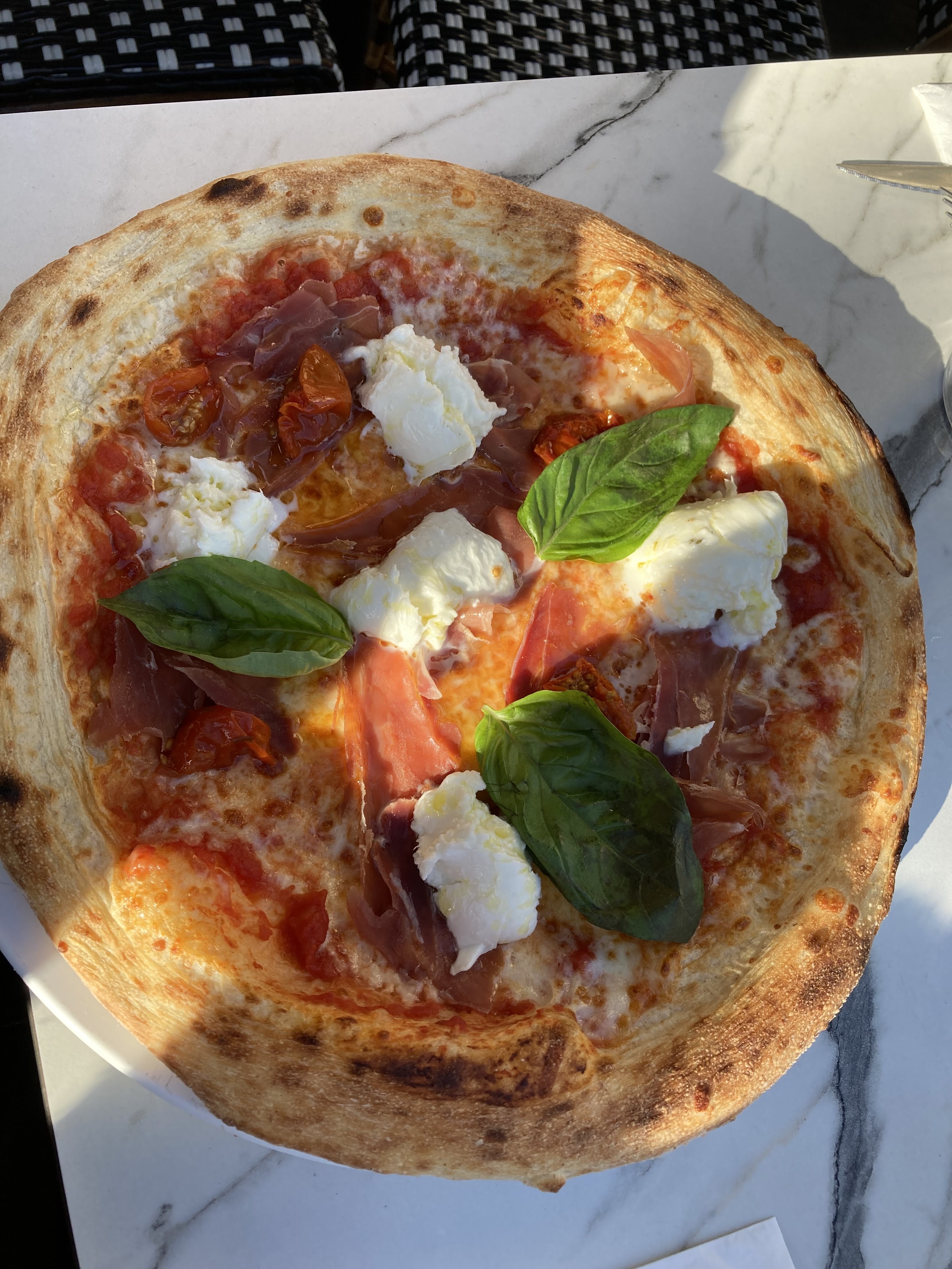 Super déjeuner tardif découvert grâce à tiktok. Nous sommes arrivées vers 14h . Peu de monde a ce moment là... Nous avions le choix de la table que nous avions choisi en terrasse. Je vous conseille de vous placer pres des petites haies de verdure pour un peu d intimité. Surtout si vous venez à 2. Aussi, les food aficionados n' ont rien a envier à l'italie... Bon d accord il ne manquait que l accent ☺️ ! Accueil chaleureux et sympathique. Excellent contact clientèle. Le beau temps nous a invité à prendre un cocktail 100% fruits naturels, top ! Je recommande aussi, pour ceux qui aiment le thé, le thé à la pêche 🍑, servi en bouteille. Très apprécié des enfants ! Salade toscane fraîche et savoureuse. Si vous aimez les poivrons, vous allez adorer cette salade gourmande. Un plaisir des yeux et des papilles..pizza parmigiano à tomber ! Nous ne pouvions pas quitter la table sans avoir goûté le canolo nocciola. Une petite gourmandise a savourer tant pour les petits que pour les grands. Super expérience culinaire ! A faire si vous aimez la cuisine italienne saine et authentique.