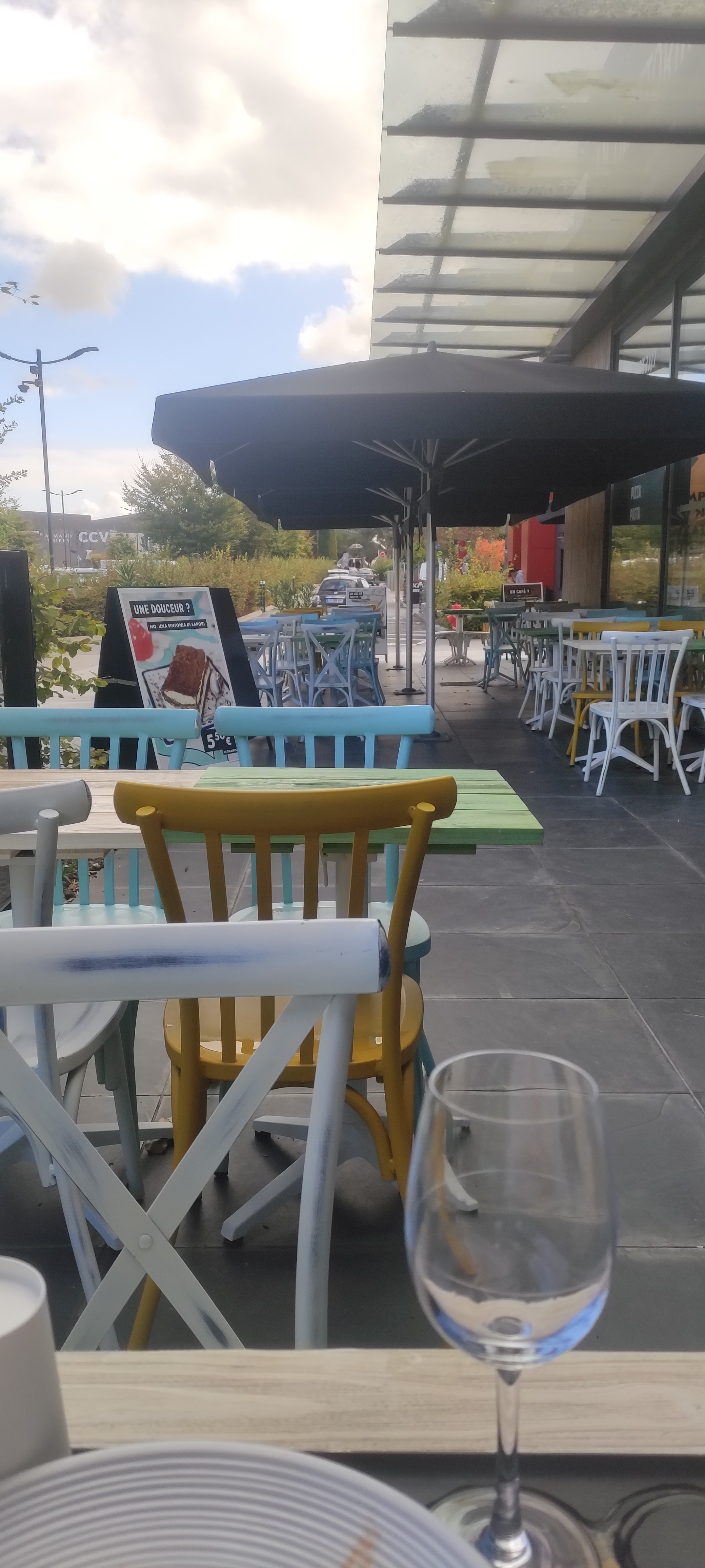 Nous sommes arrivés en plein briefing avec le responsable (12h) nous avions l’air de déranger. L’accueil a été déplorable, le bonjour inexistant bref passons. Nous ne connaissions pas le concept que nous avons trouvé vraiment moyen (se lever, aller au comptoir, commander et payer à chaque fois que l’on veut consommer quelque chose non merci on pensait manger dans un resto italien). Une serveuse qui avait l’air de débarquer, le tout cumulé nous sommes partis sans commander. Ce qui n’a pas eu l’air de déranger le responsable que sa clientèle parte sans consommer (toujours sur son pc). Nous avons bien fait de partir car nous avons été 1000 fois mieux accueillis dans le restaurant à côté.