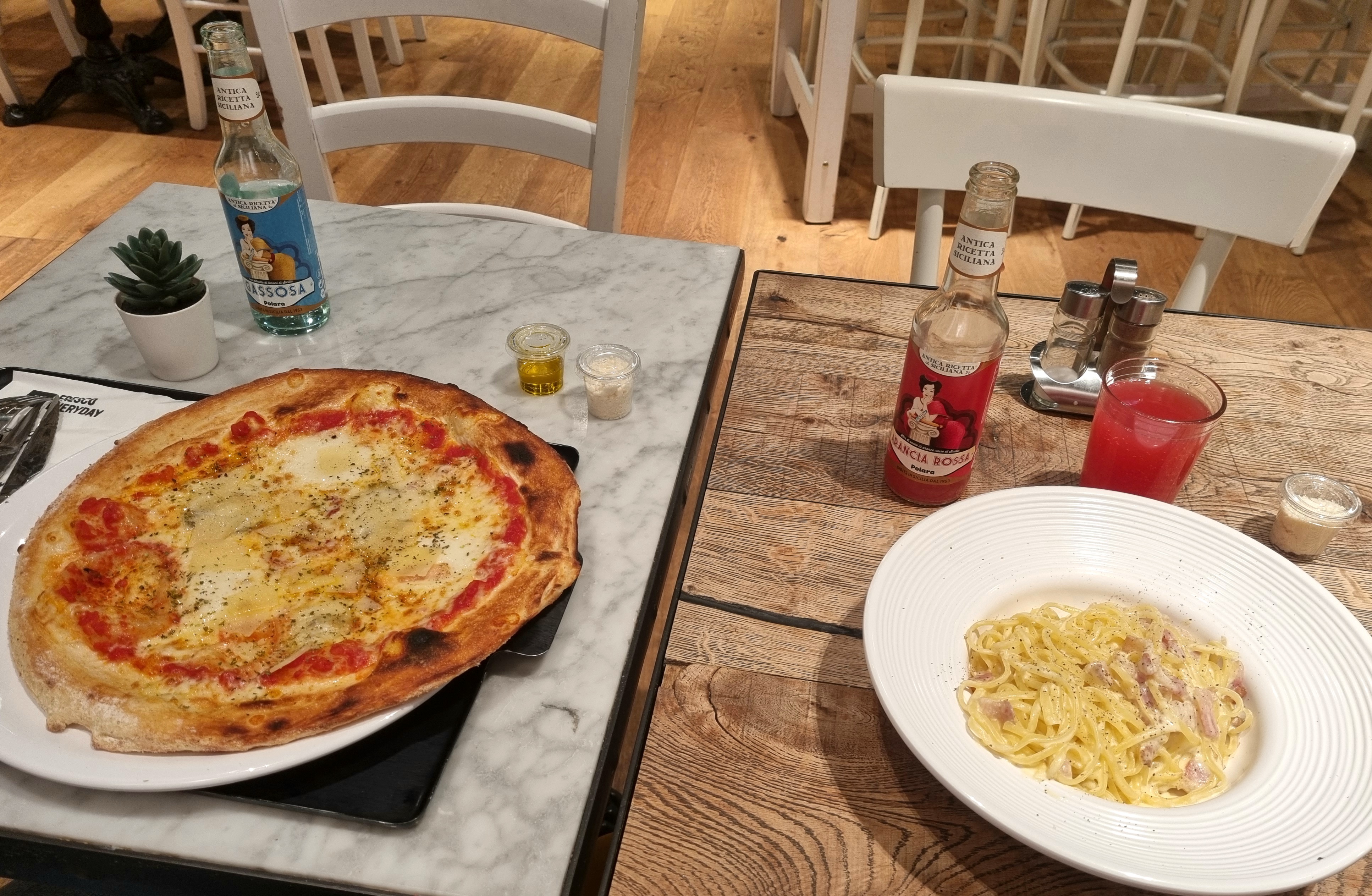 Accueil au top Concept assez sympa restau 100%italien et fait maison Les pizzas sont excellentes +20 Boisson très sympa à la rose et très bon Pate carbo très bon juste quelque pâte ou il manque de cuisson mais bon pardonnable 😇 lardon non industriel !!! Les desserts 👌🏼 Sympa le midi comme le soir On reviendra !
