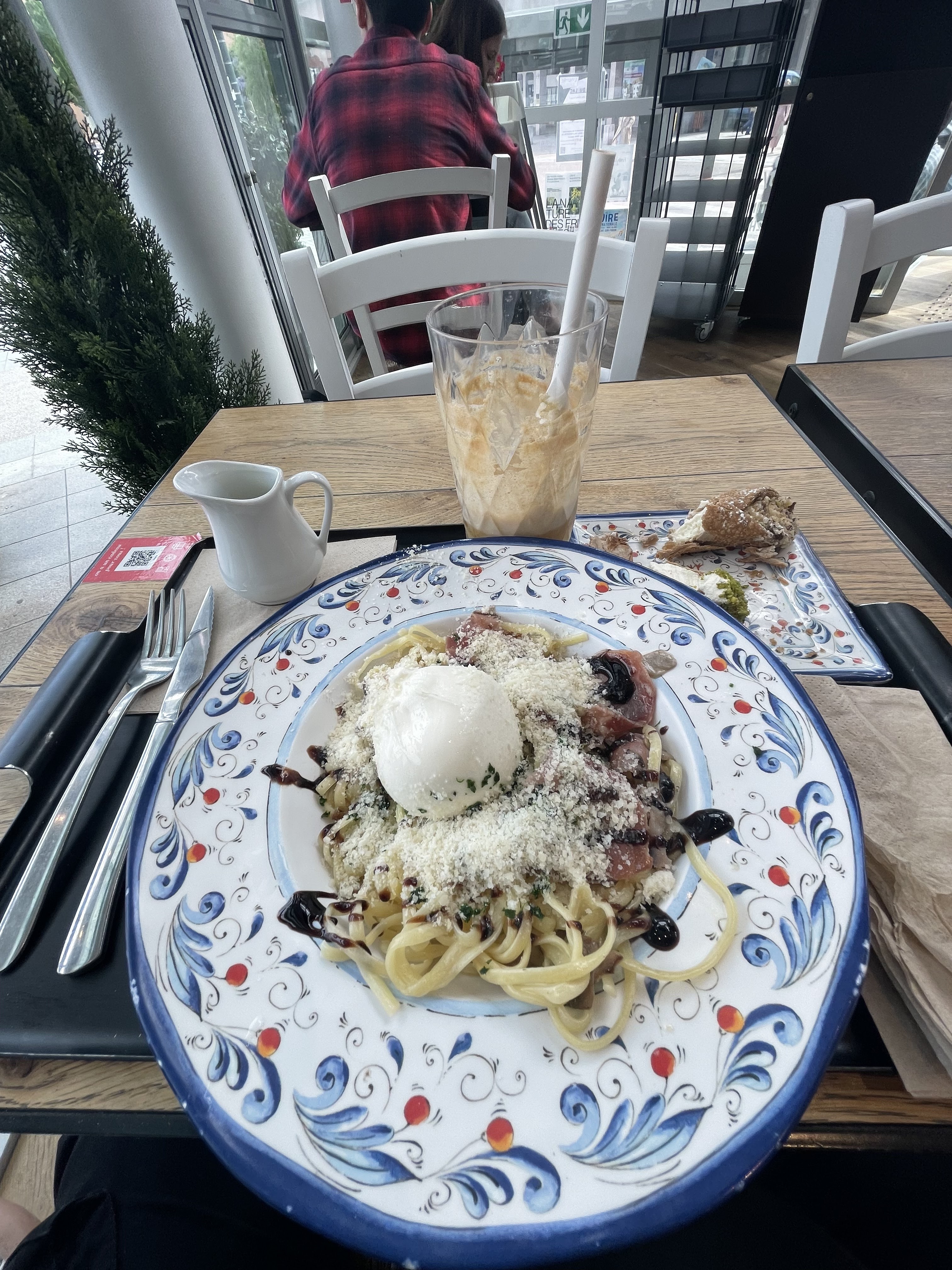 ils étaient tous accueillant et super gentils !! la jeune fille à l’accueil était trop mignonne. les pâtes étaient pépites, le jus pareil ⭐️ (j’aurais du prendre le tiramisu parce que j’ai moins aimé le dessert que j’ai pris)