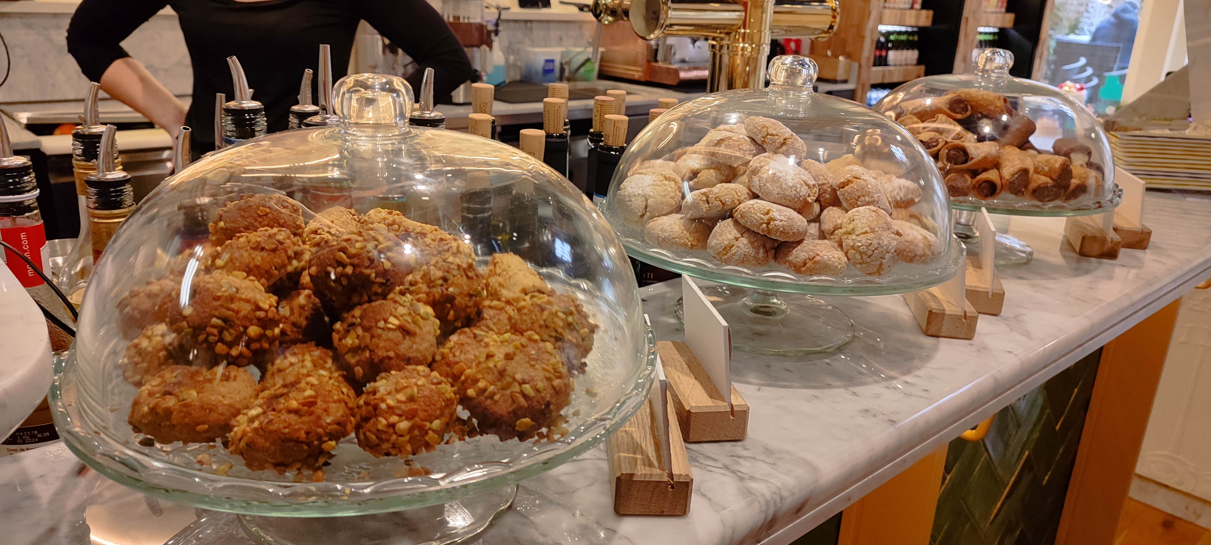 Personnel sympathique et accueillant, cadre super sympa par contre côté cuisine comment dire.. Peut-être ai-je une attente trop élevée étant italien mais bon quand même. Produit frais ? Peut être. mais avec du goût se serait mieux. Industriel ? Sûrement. Produit d'une qualité moyen moins, si vous voulez une vrai mozzarella ce n'est pas ici que vous la trouverez. Quant au pizze et pain maison, un vrai problème aussi, manque de fermentation à peine tiède = du caoutchouc, recette à revoir. Petit astuce pour les cannoli, il seront meilleurs s'il sont remplis 'minute' sinon le fourrage détrempe le biscuit et c'est vraiment pas terrible.